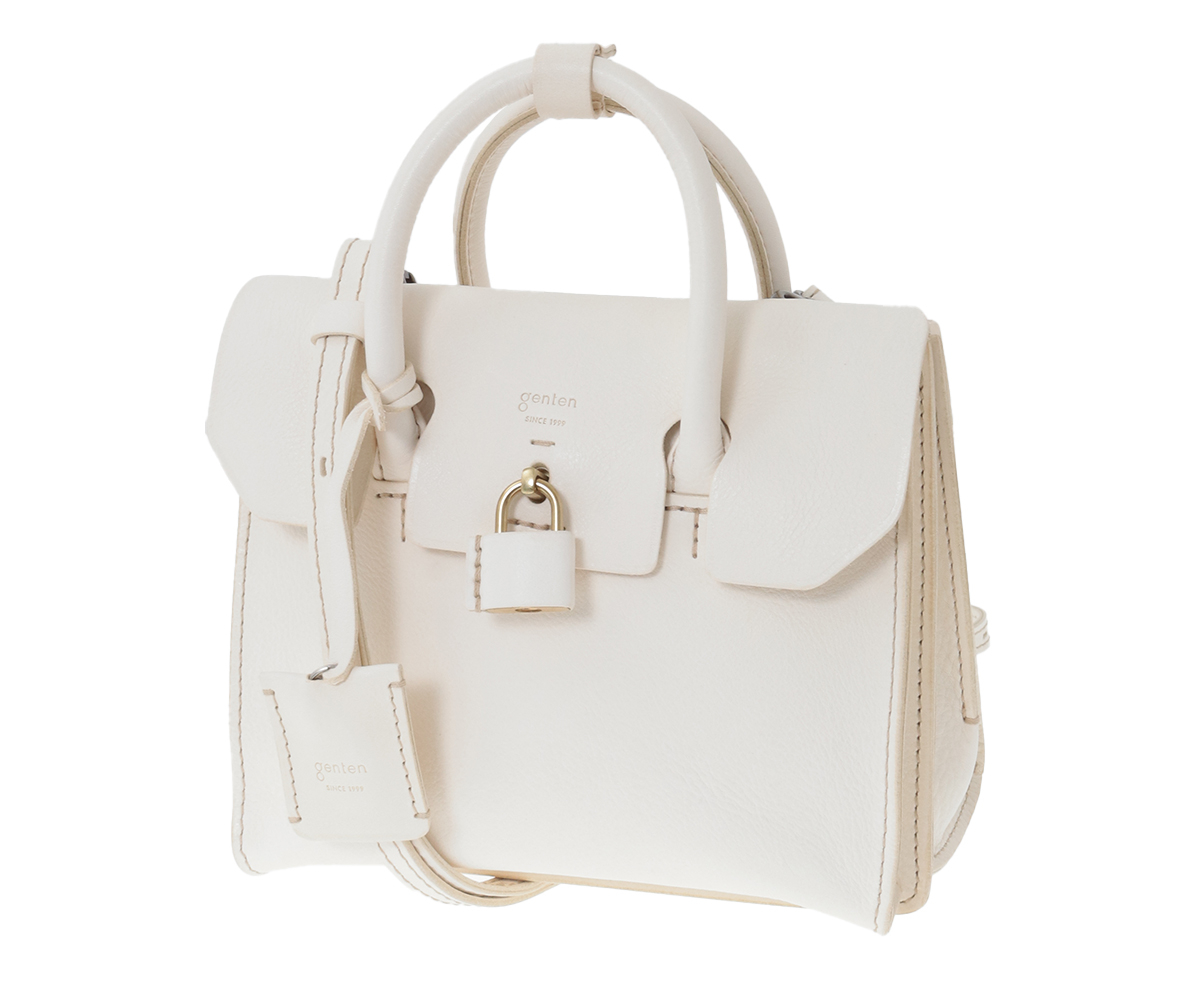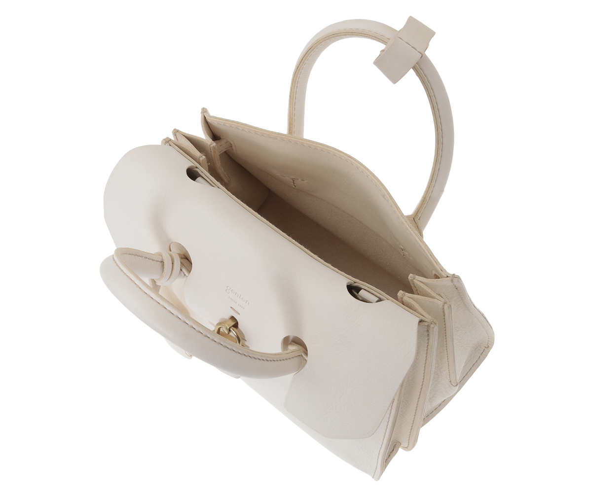 gentenお馴染みのヴァケッタ革、ミネルヴァボックス(minerva box)を、ふんだんに使用しました。バッグ本体やポケットの仕様部分に、革一枚仕立ての構造を多くあしらい、切り目や革裏を、職人が一枚一枚丁寧に腑糊で磨きをかけました。時間をかけて鞣されたタンニン革だからこそ楽しめる一枚革の魅力とエイジングの極みを存分にお楽しみください。