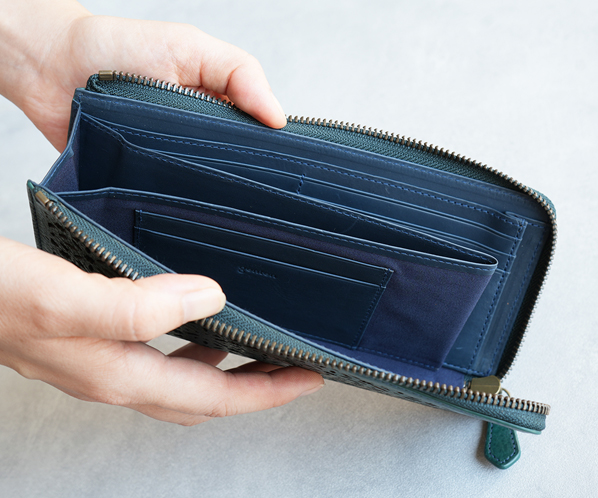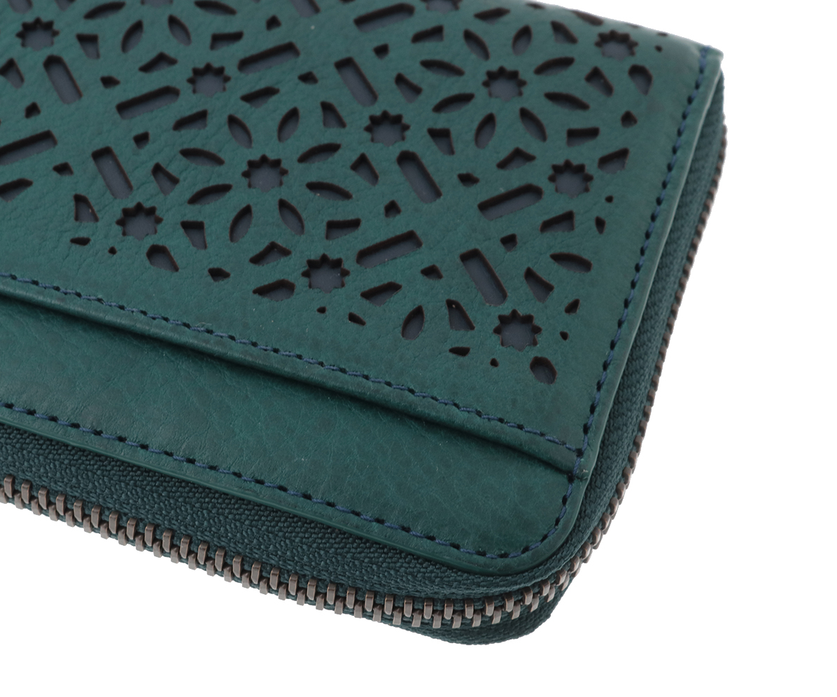 より繊細に仕上げた小さな多面体の透かし模様は、革表面の地シボと合わさり、より複雑に表情豊かに映し出してくれます。