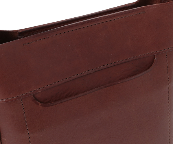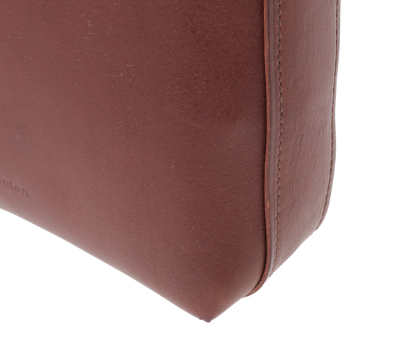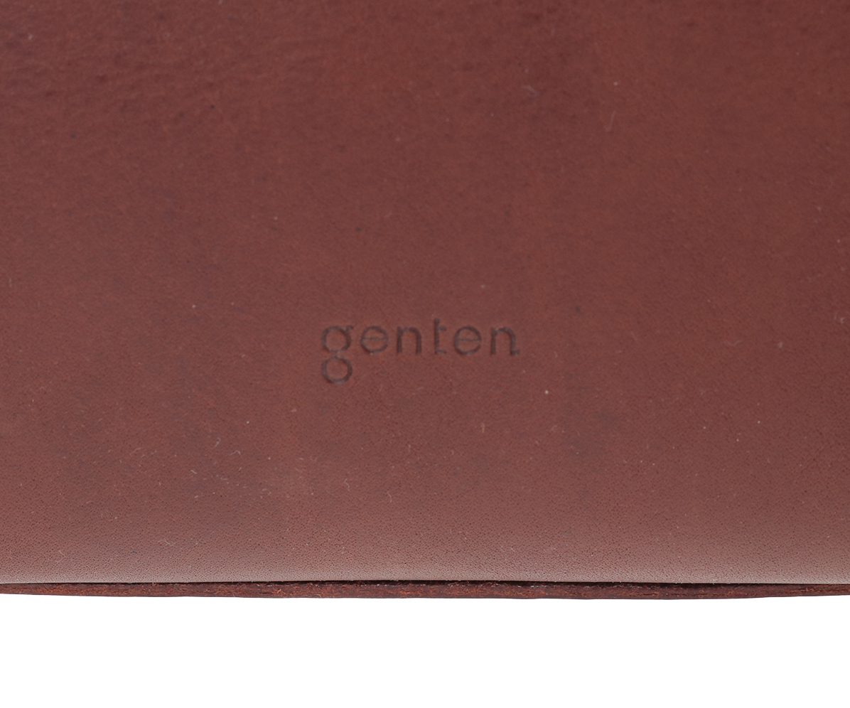 genten/dan gentenお馴染みのヴァケッタ革、ミネルヴァボックス(minerva box)を、ふんだんに使用しました。バッグ本体やポケットの仕様部分に、革一枚仕立ての構造を多くあしらい、切り目や革裏を、職人が一枚一枚丁寧に腑糊で磨きをかけました。時間をかけて鞣されたタンニン革だからこそ楽しめる一枚革の魅力とエイジングの極みを存分にお楽しみください。