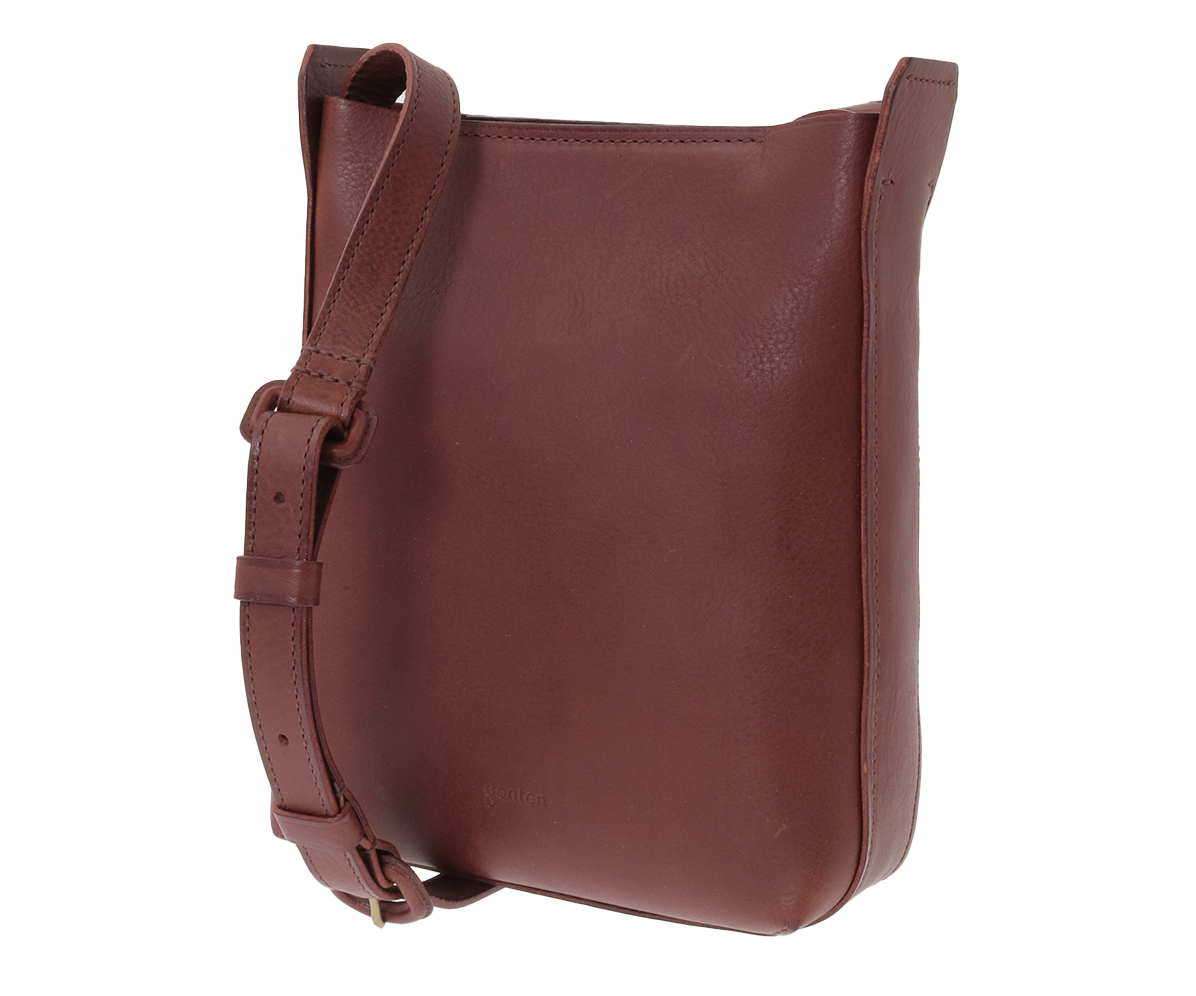 縦型ショルダーはスッキリとしたスクエア型に見えますが、実は柔らかな雰囲気を出したり、裁断面の力強さが活きたりするように、空気を包み込むような仕様にしています。スクエアのショルダーはトレンドでもありますが、gentenでは革という素材にマッチした直線的すぎないフォルムに仕立てました。