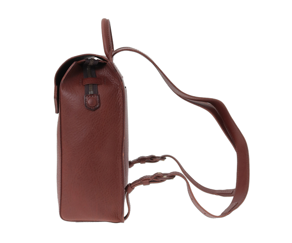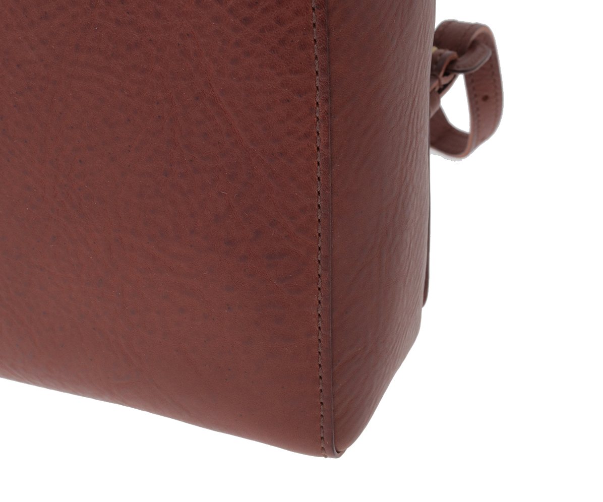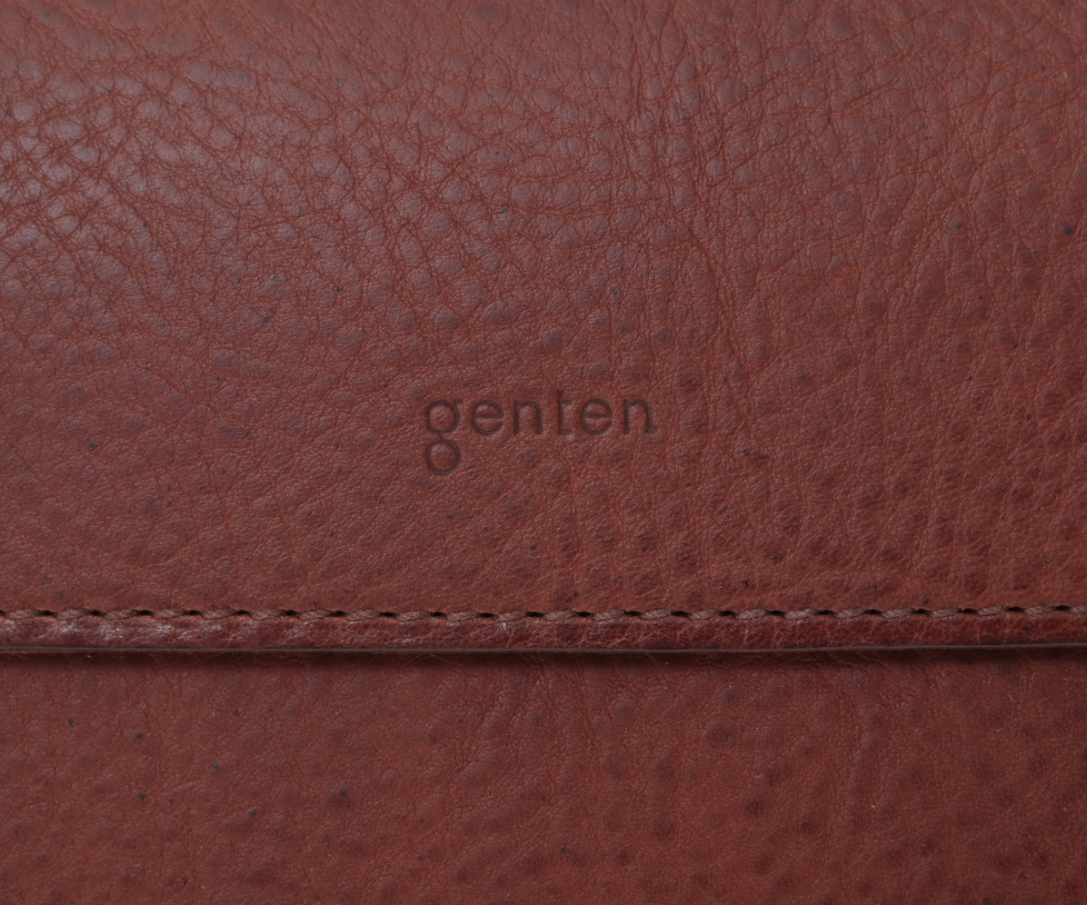 genten/dan gentenお馴染みのヴァケッタ革、ミネルヴァボックス(minerva box)を、ふんだんに使用しました。バッグ本体やポケットの仕様部分に、革一枚仕立ての構造を多くあしらい、切り目や革裏を、職人が一枚一枚丁寧に腑糊で磨きをかけました。時間をかけて鞣されたタンニン革だからこそ楽しめる一枚革の魅力とエイジングの極みを存分にお楽しみください。