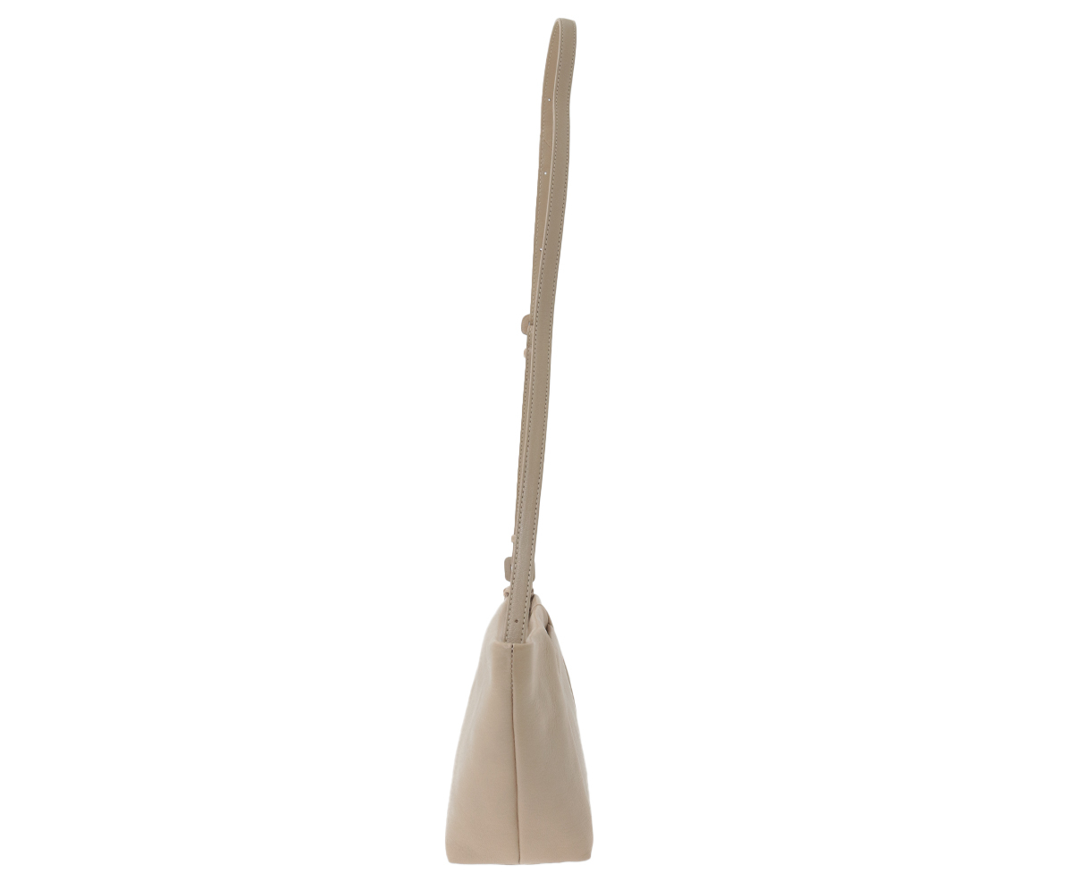 軽量、潔くシンプルなデザインでどんなコーディネートにもマッチしやすいショルダーです。冬場のボリュームのあるアウターにもしっくりとなじみます。デイリーユースにぴったりな小型のショルダーはマチが広めに取られているので見た目よりも収納力があります。ショルダー穴ピッチを広めに穴数も多く設けているので、スタイリングによって短くも持てます。