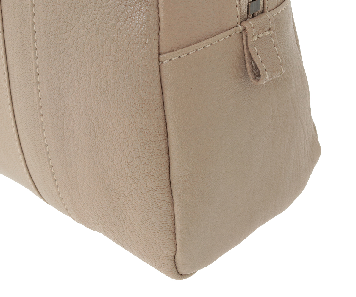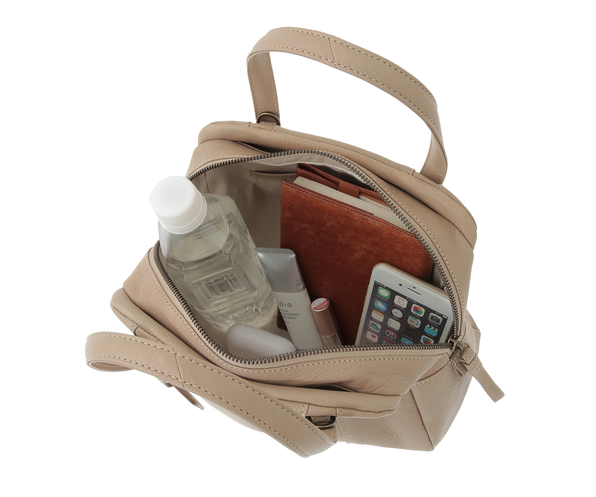 ゴートの魅力はなんといってもその軽さです。革が薄い。薄いのですが、繊維質が緻密で詰まっているので弾力性があり、しなやかでやわらか。革が自然に体のラインに添ってくれて、背中や腰骨に不自然に当たる違和感がなく、まさに「体になじむ」という言葉がぴったりきます。 また、山羊革は摩擦に比較的強い特性があるので、例えば満員電車で擦れあったり、多少の汚れをタオルなどでババッと拭いても傷になりにくいという扱いやすさがあります。