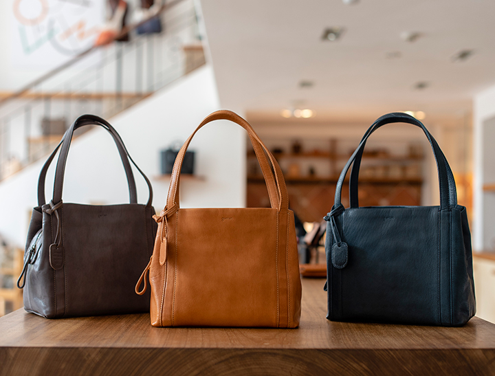 ゴートの魅力はなんといってもその軽さです。革が薄い。薄いのですが、繊維質が緻密で詰まっているので弾力性があり、しなやかでやわらか。革が自然に体のラインに添ってくれて、背中や腰骨に不自然に当たる違和感がなく、まさに「体になじむ」という言葉がぴったりきます。 また、山羊革は摩擦に比較的強い特性があるので、例えば満員電車で擦れあったり、多少の汚れをタオルなどでババッと拭いても傷になりにくいという扱いやすさがあります。