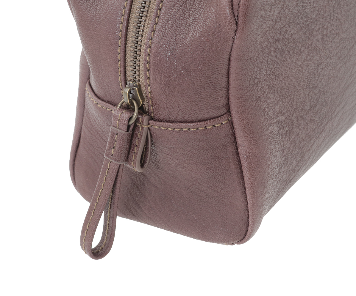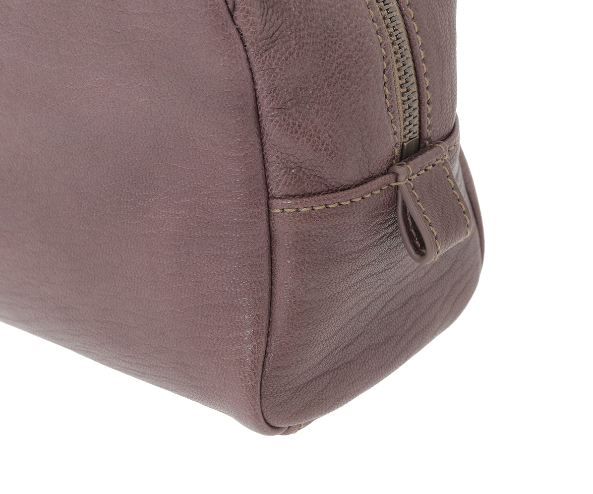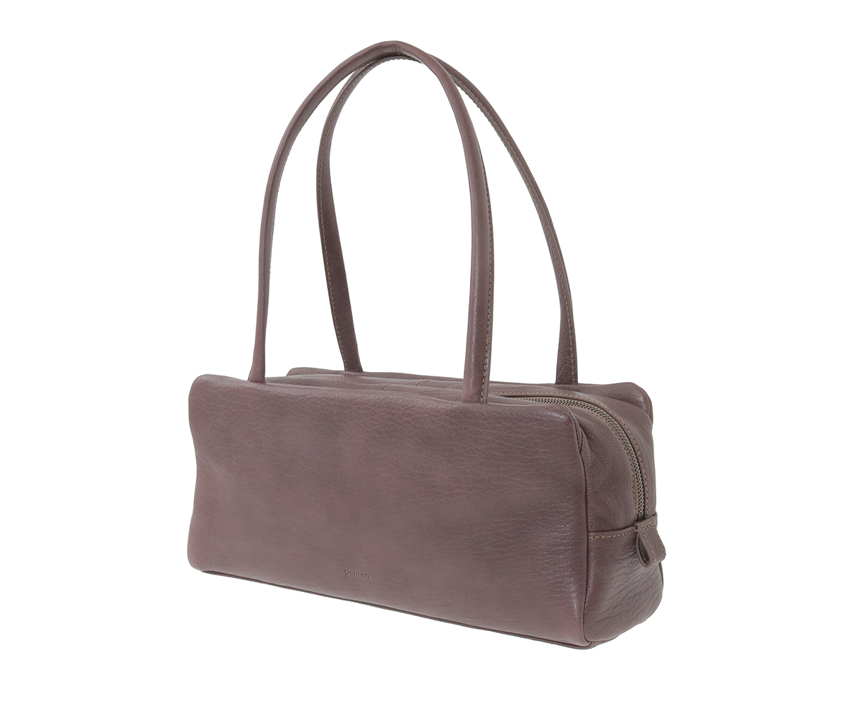ゴートの魅力はなんといってもその軽さです。革が薄い。薄いのですが、繊維質が緻密で詰まっているので弾力性があり、しなやかでやわらか。革が自然に体のラインに添ってくれて、背中や腰骨に不自然に当たる違和感がなく、まさに「体になじむ」という言葉がぴったりきます。 また、山羊革は摩擦に比較的強い特性があるので、例えば満員電車で擦れあったり、多少の汚れをタオルなどでババッと拭いても傷になりにくいという扱いやすさがあります。