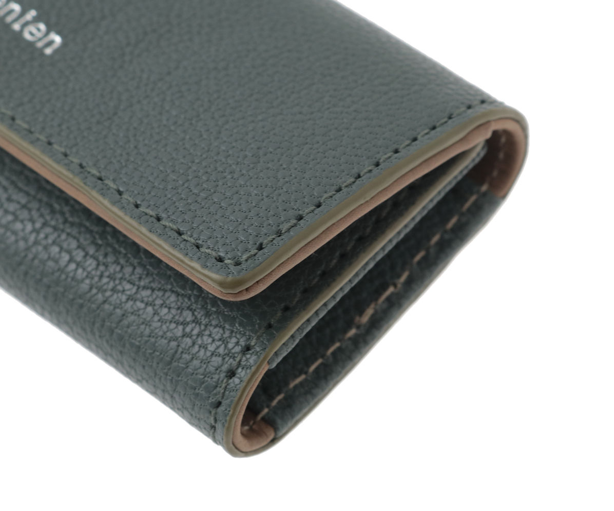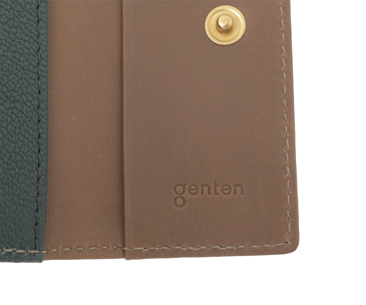 インド原皮の小判のゴートをLWGゴールドレートを獲得したインドのタンナーで鞣しています。キットまではいきませんが、小物だからこそ版が取れる小判のゴートを使用しています。シボが四角くきめ細やかで、銀面が強いのも特徴です。内装にはインドでピット鞣しをしたカーフを使用。
