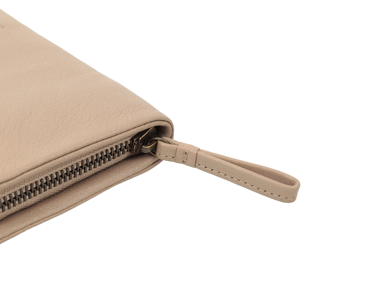 ゴートの魅力は、軽くて丈夫なこと。薄い革ですが、繊維質が緊密で弾力があるため、銀面(革の表面)の強度があります。それでいて、しなやか。さらに雨染みにも強く、扱いやすい革ですので、幅広い年代のお客さまにお使いいただいています。