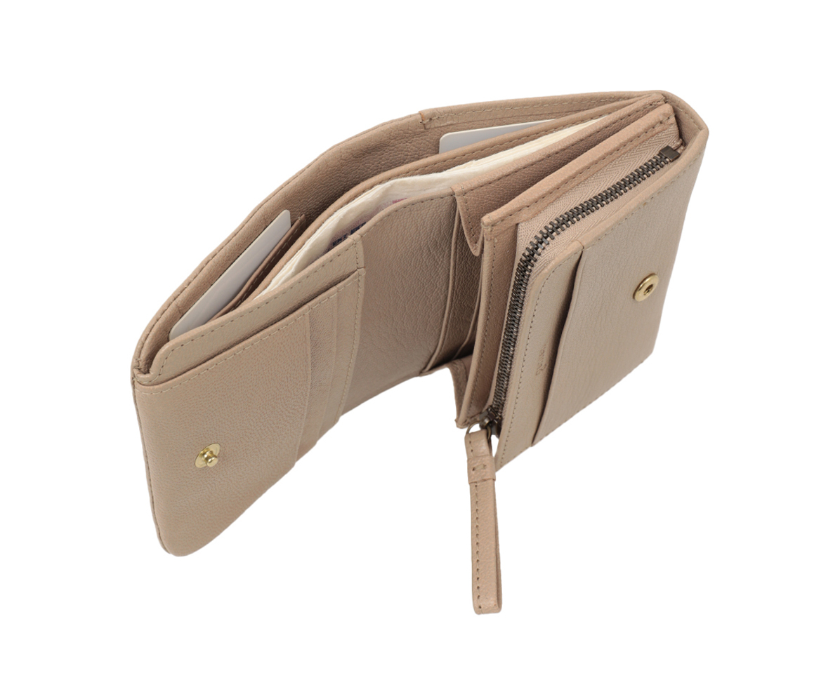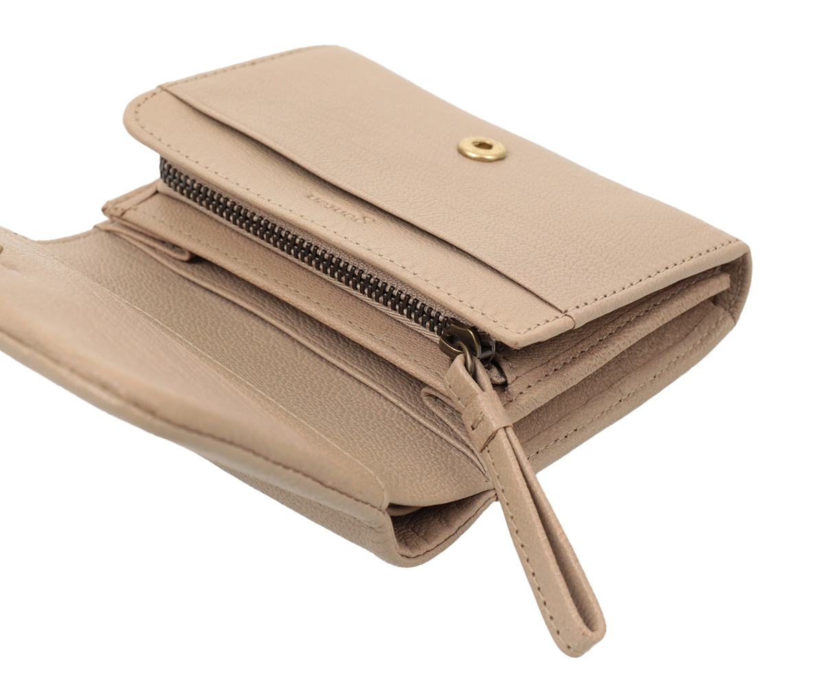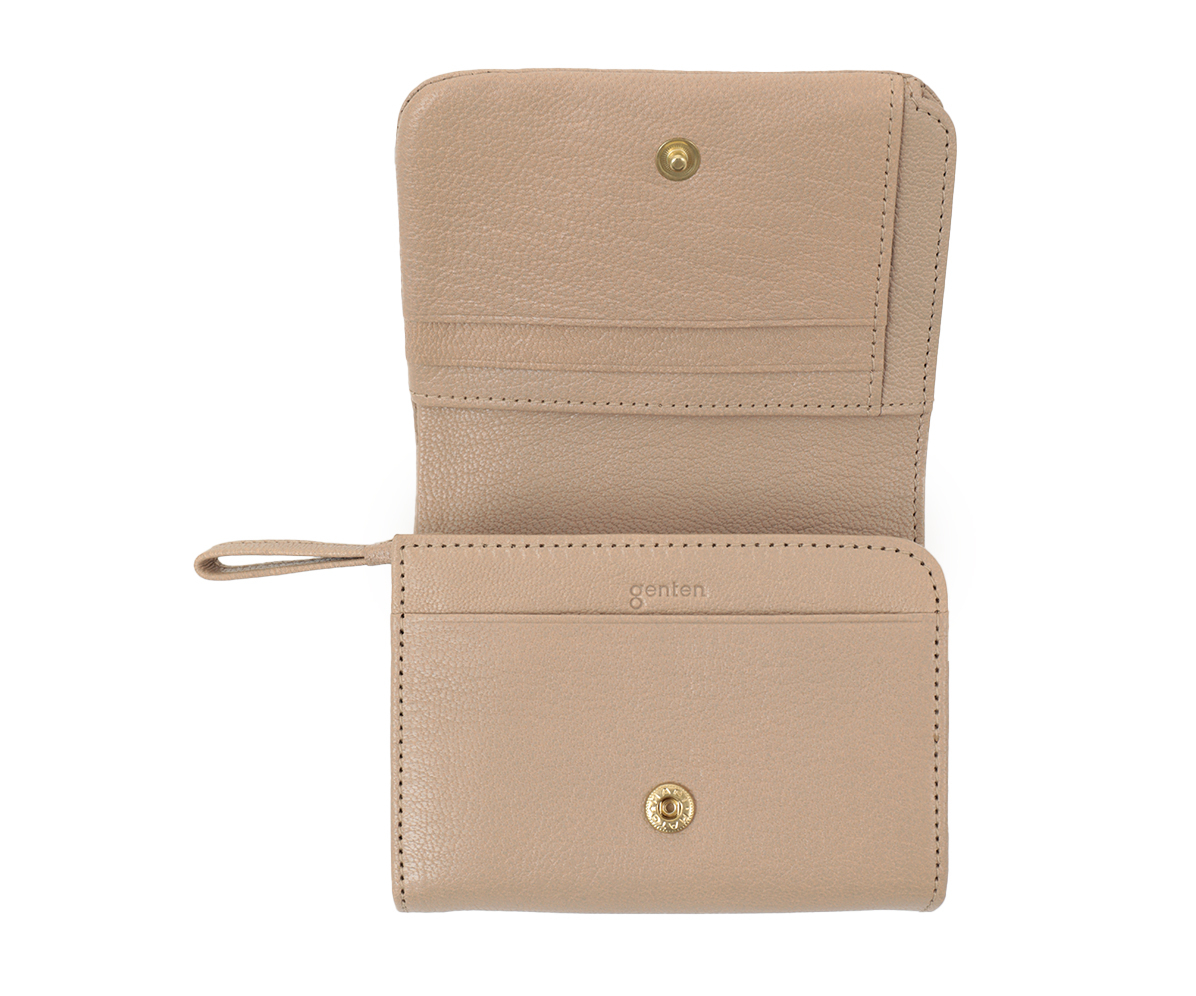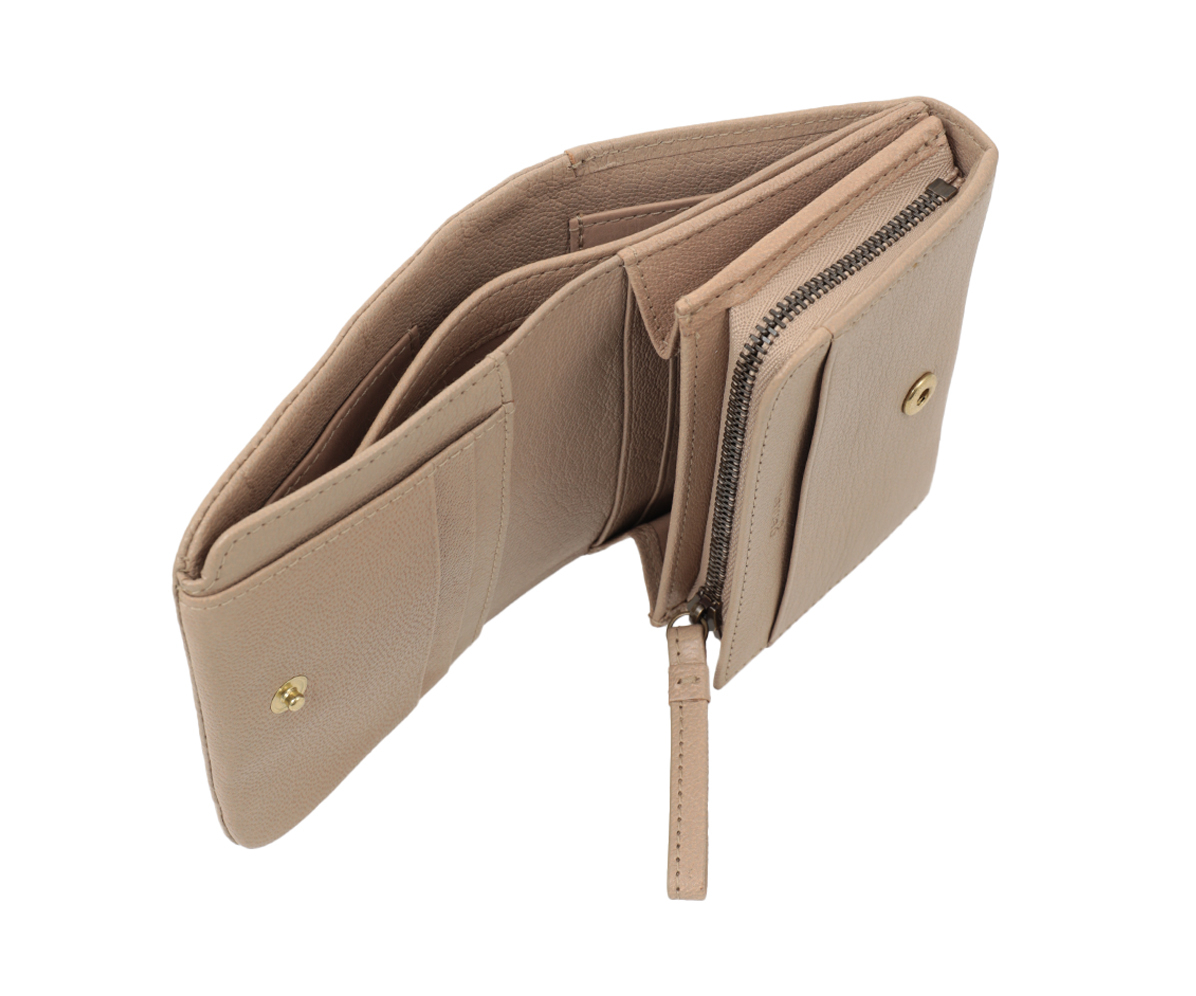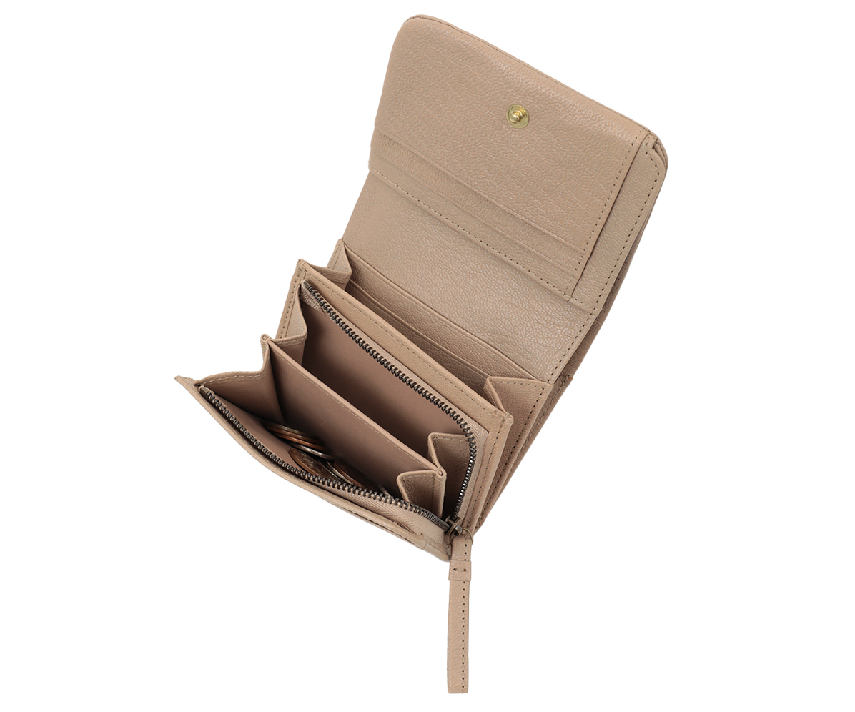 オールインワンな二つ折り財布。小銭入れが二層式&L字ファスナーで使いやすくできています。
