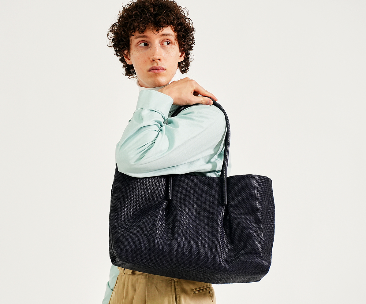 身体にしなやかに寄り添い、「持つ」というよりは、「身に纏う」様な感覚のバッグです。