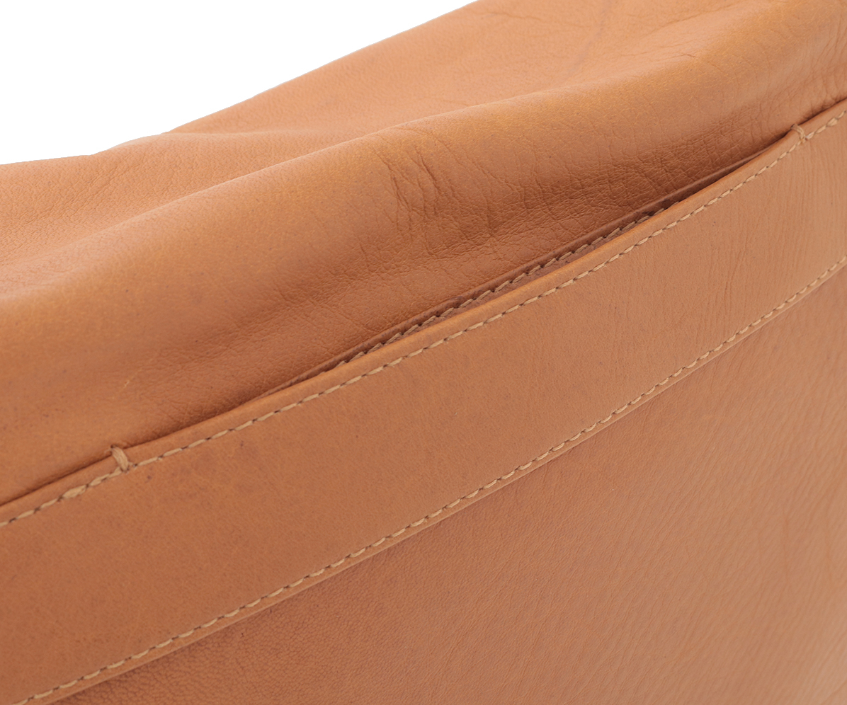 ※ショルダーバッグのフラップ部分には、あえてデザインを加えず、革のへり(端)が持つ形をそのまま取り入れました。