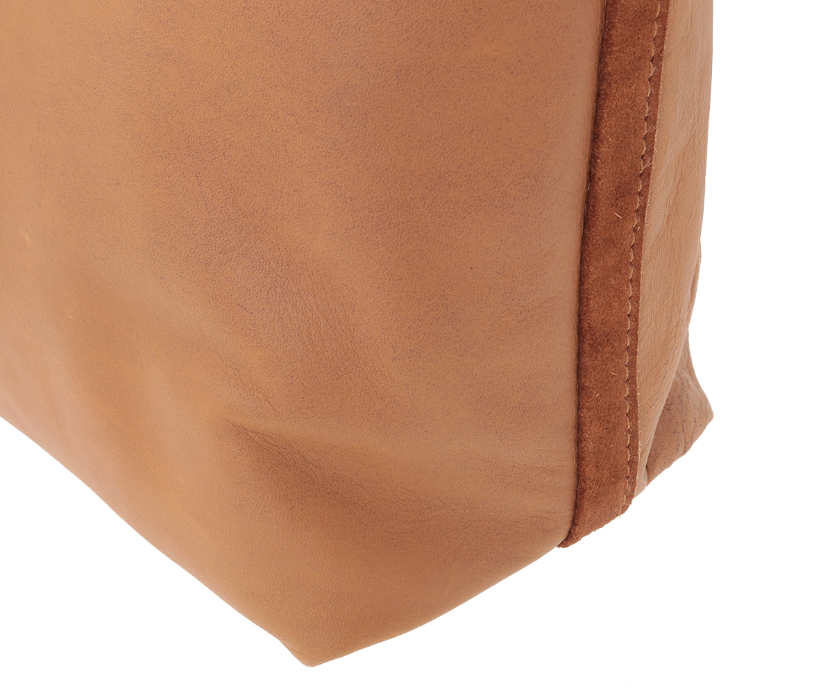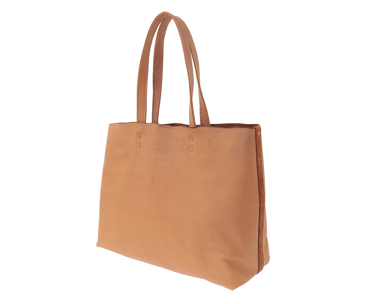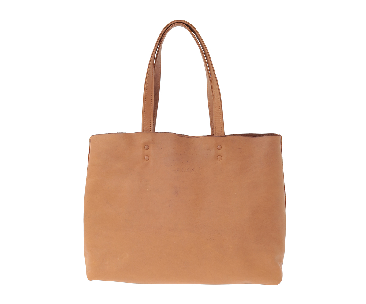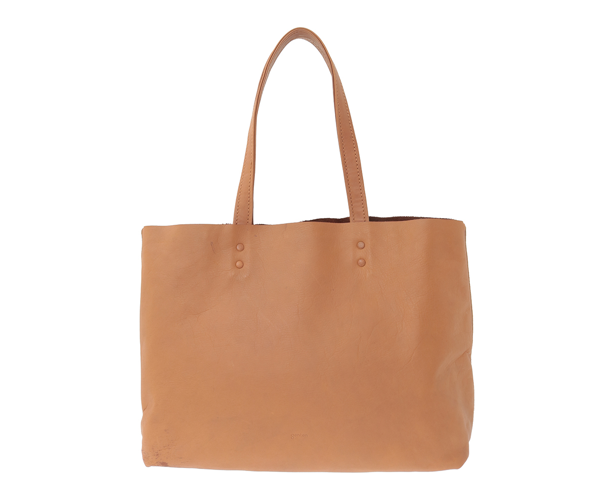 革の中と表面で染色の色を変え、キズやシミを「豊かな革の景色」として表現した、オリジナルで開発した軽量なバッグです。