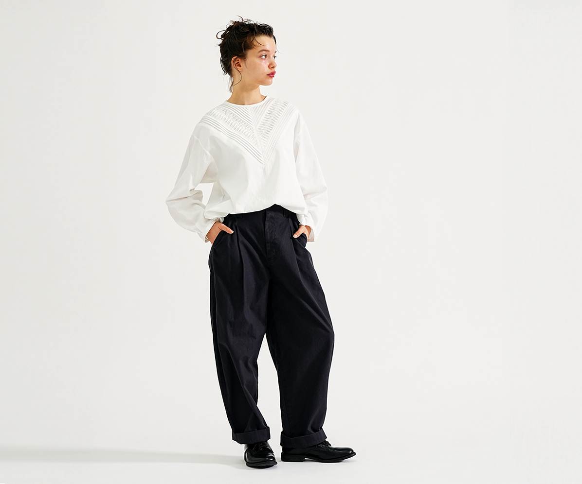 シルエットの綺麗さを追求したパンツです。