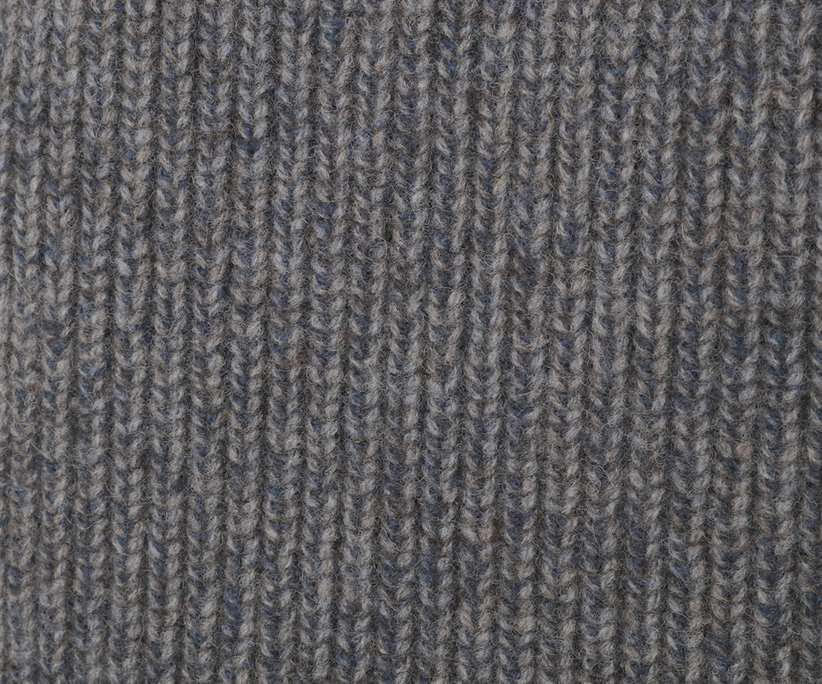 2色のトップ糸をプレーティング編みし、より複雑なニュアンスのある色に仕上げました。
