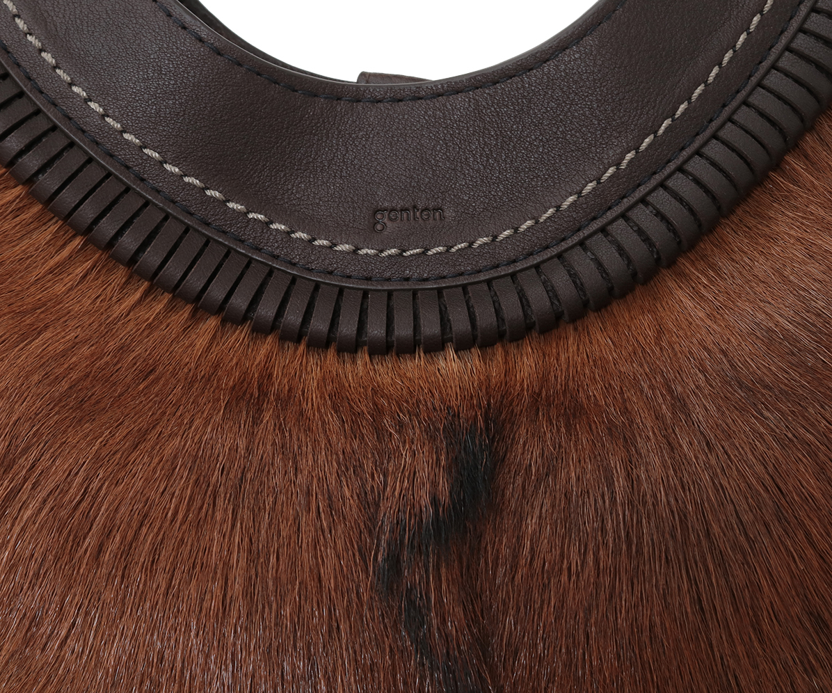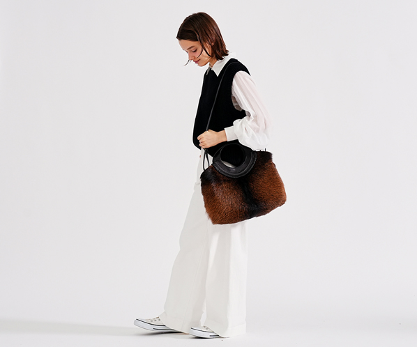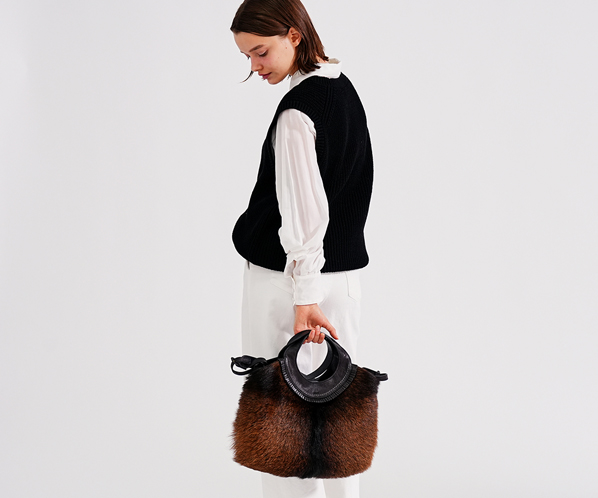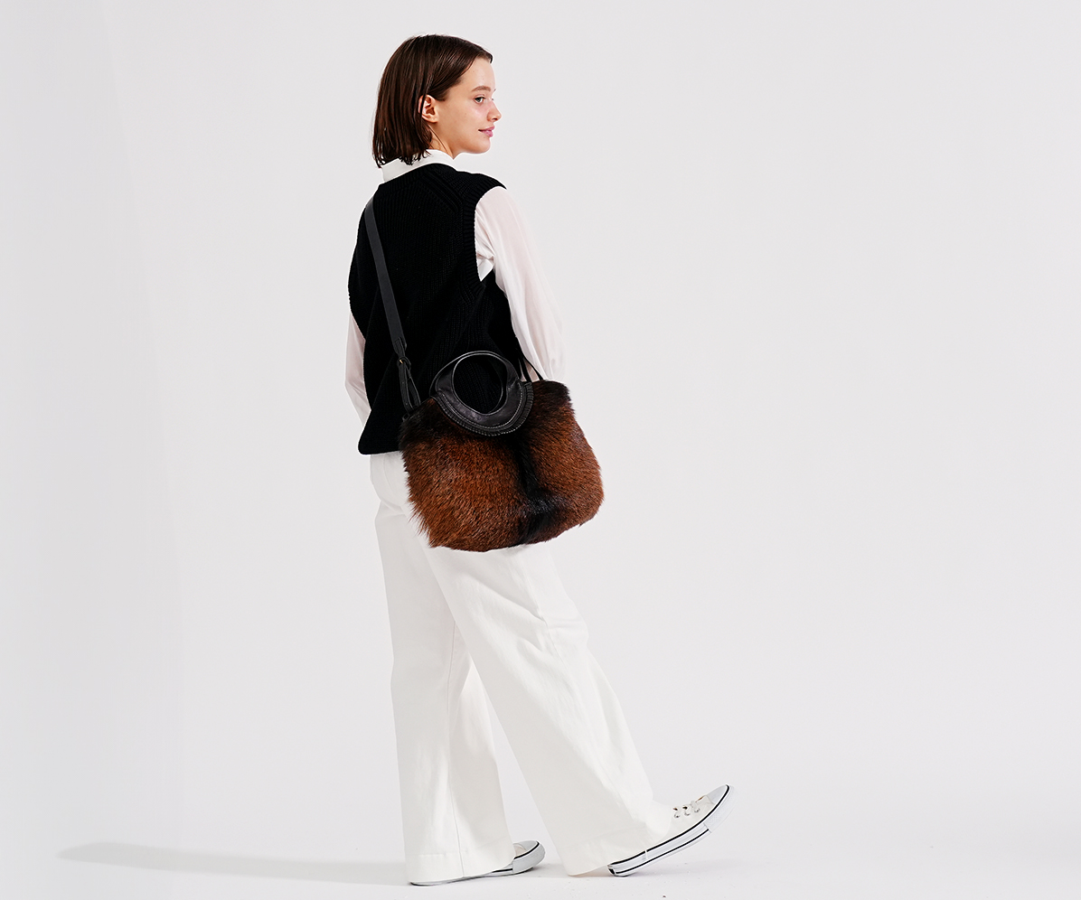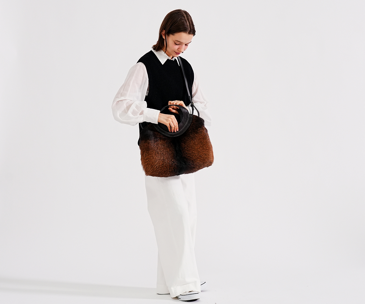 フェード感ある風合いの牛革に存在感抜群のゴートのファーを組み合わせ、野性味がありながらも、丸みのあるシルエット、洗練された仕上げ処理で上品に仕上げました。