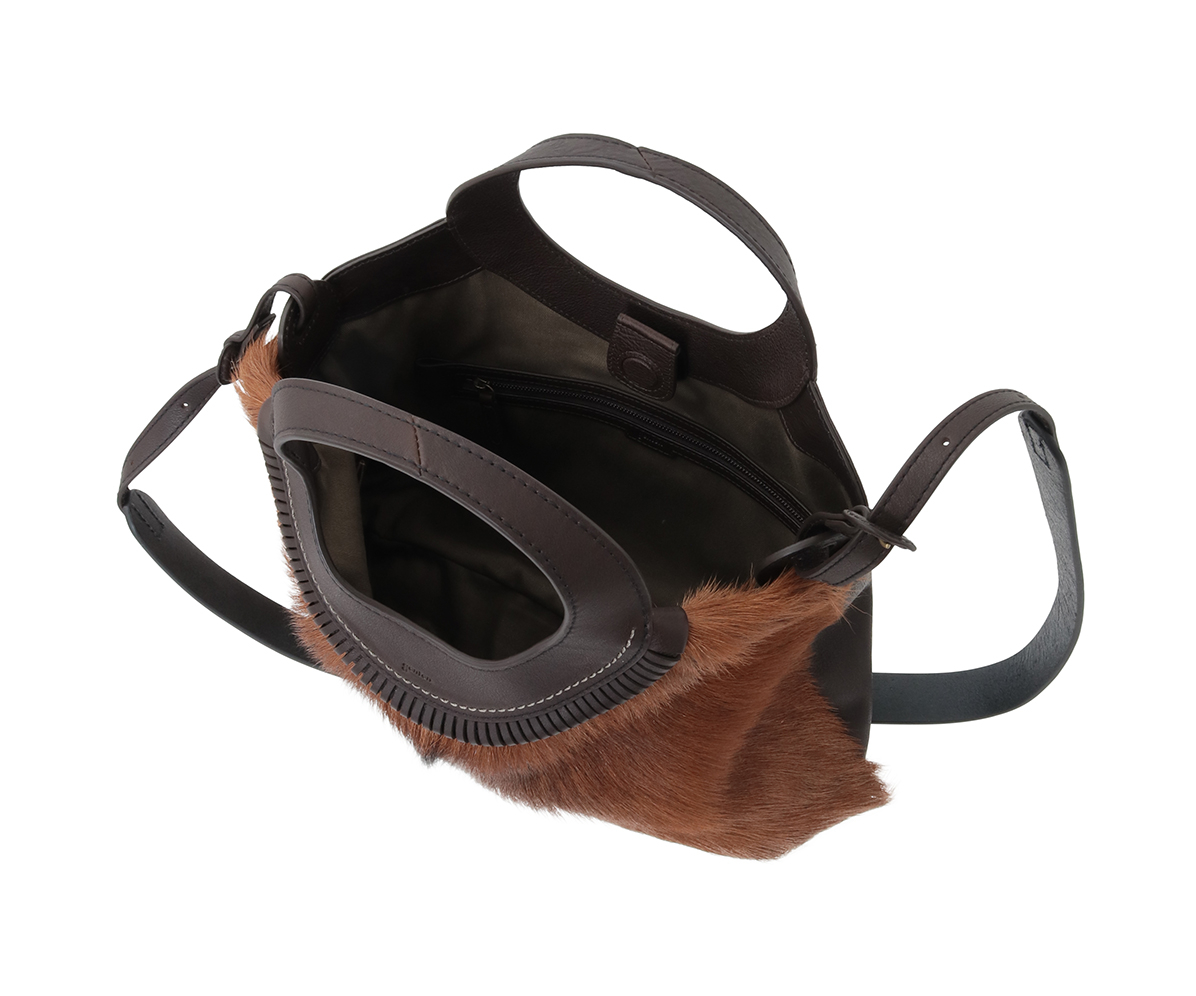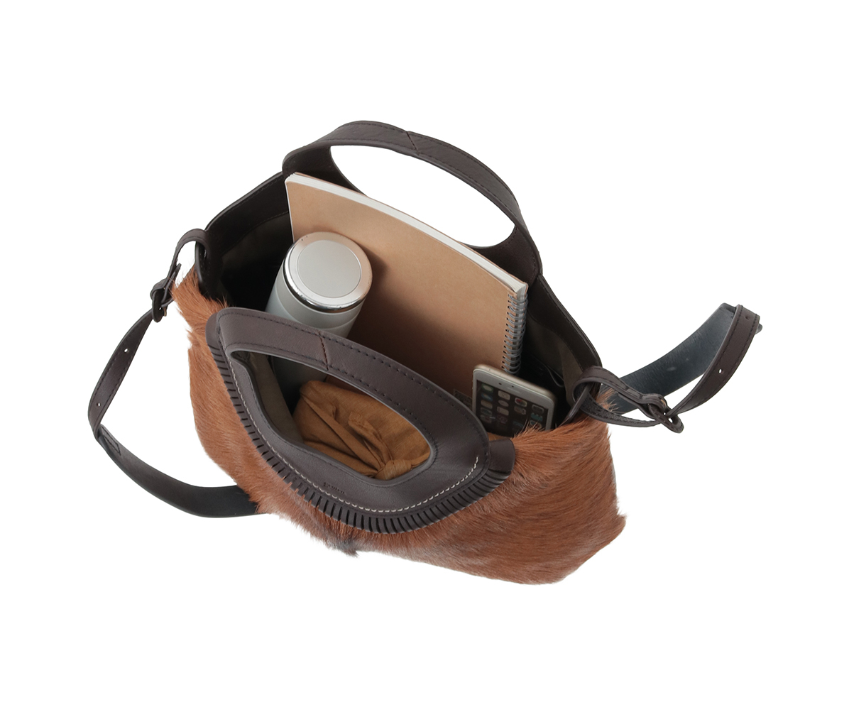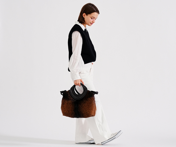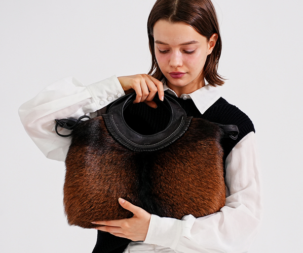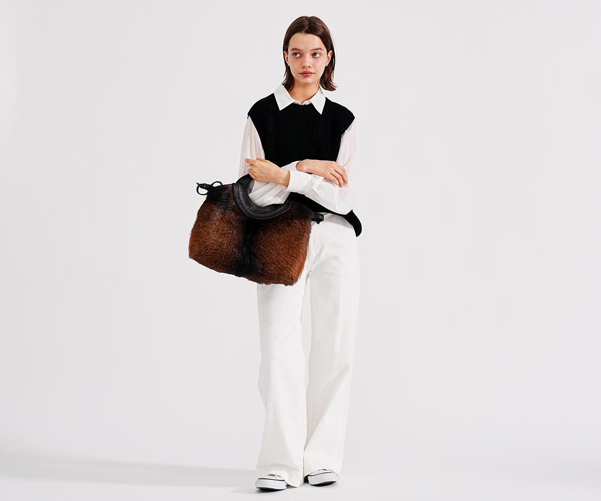 フェード感ある風合いの牛革に存在感抜群のゴートのファーを組み合わせ、野性味がありながらも、丸みのあるシルエット、洗練された仕上げ処理で上品に仕上げました。