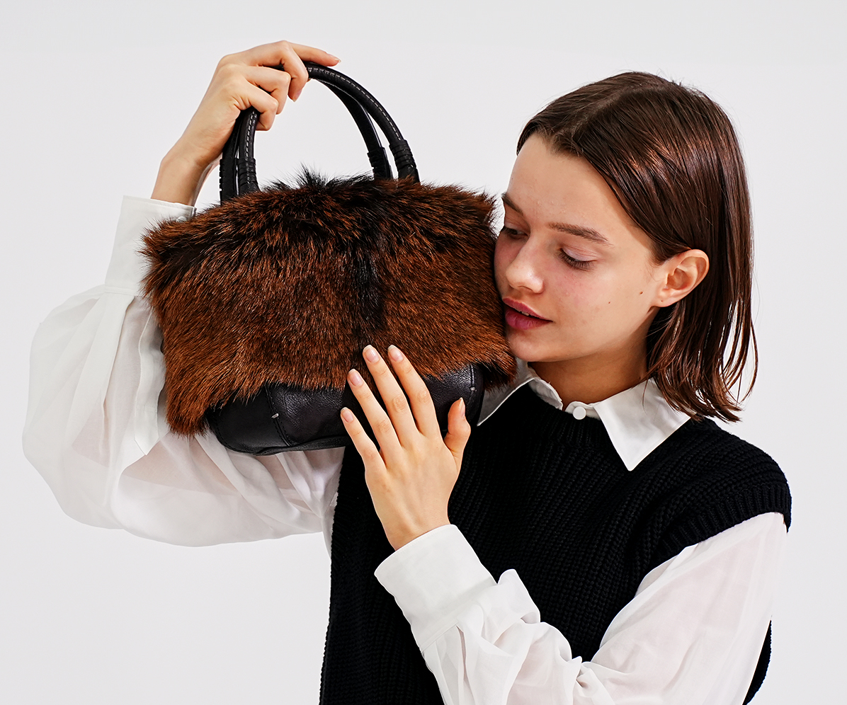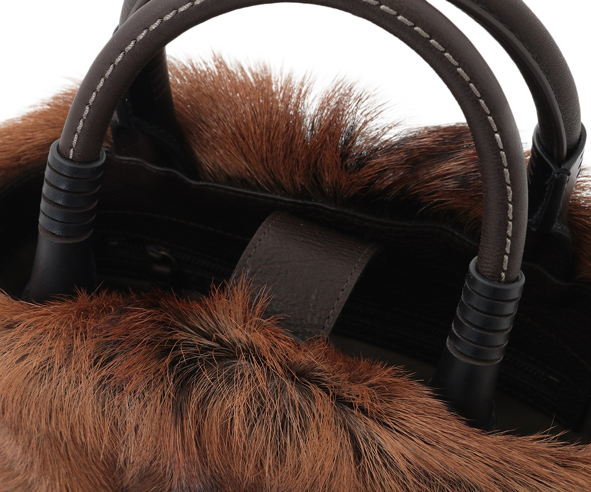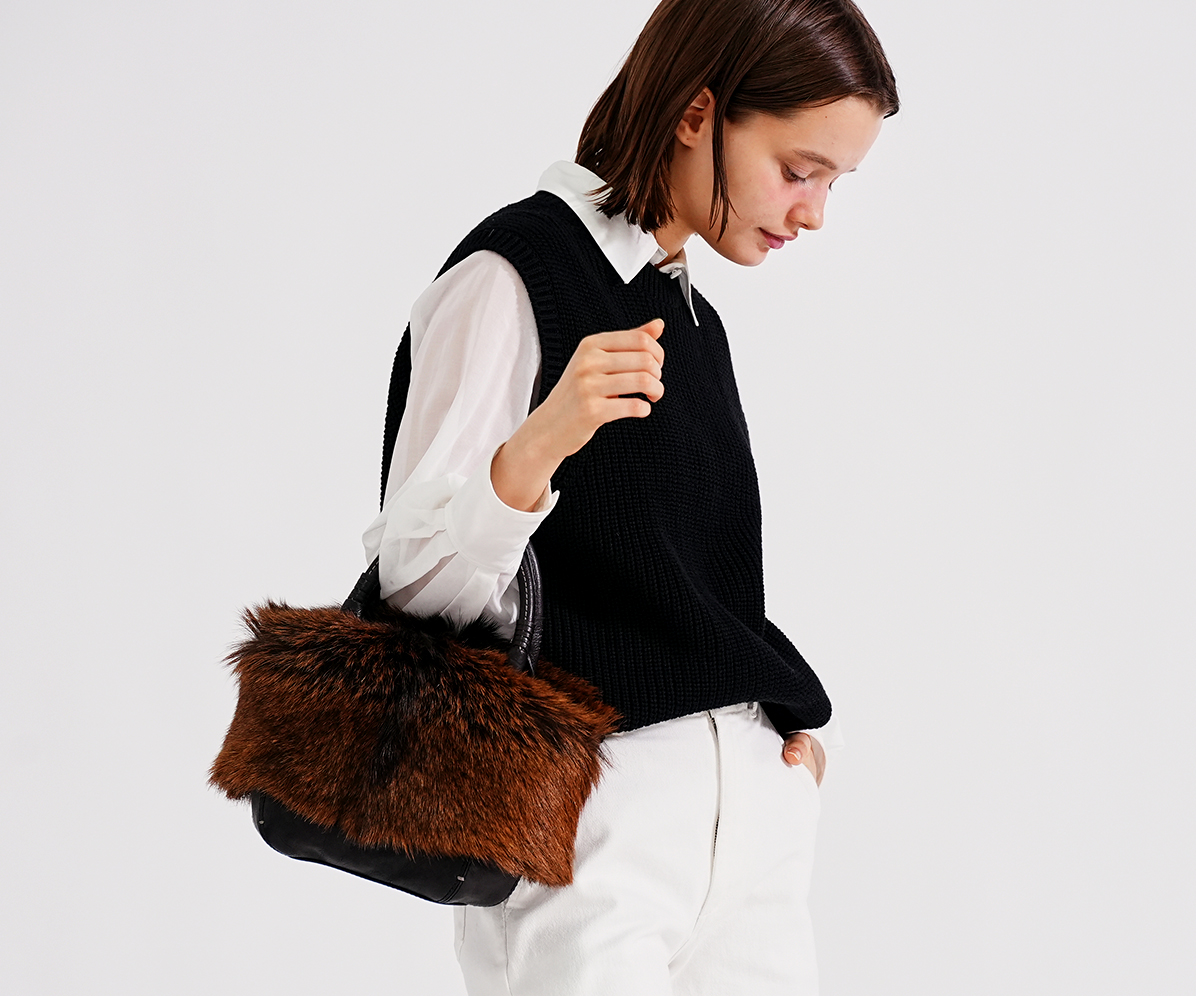 フェード感ある風合いの牛革に存在感抜群のゴートのファーを組み合わせ、野性味がありながらも、丸みのあるシルエット、洗練された仕上げ処理で上品に仕上げました。