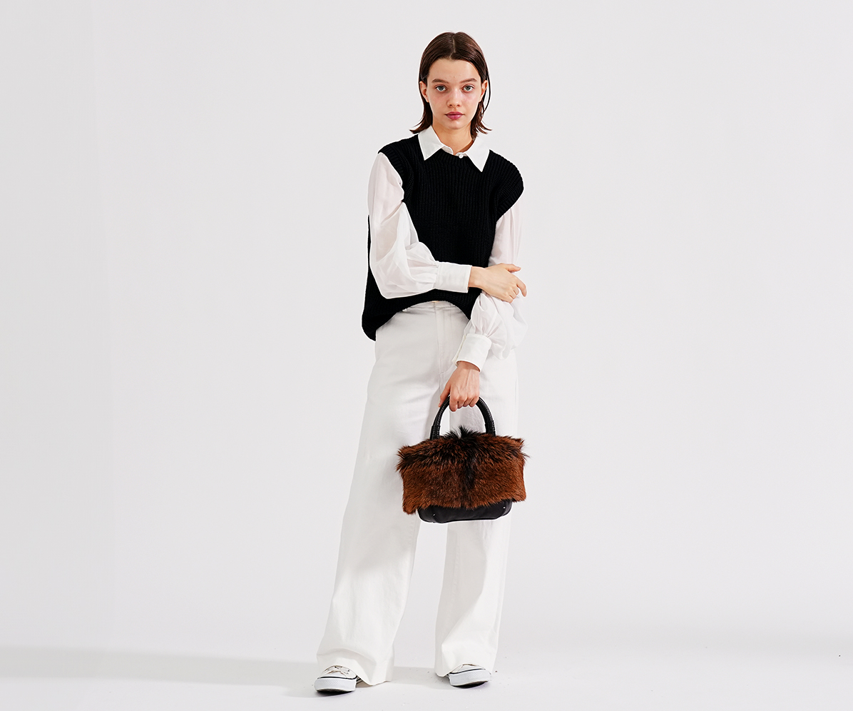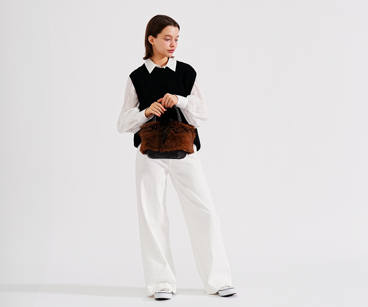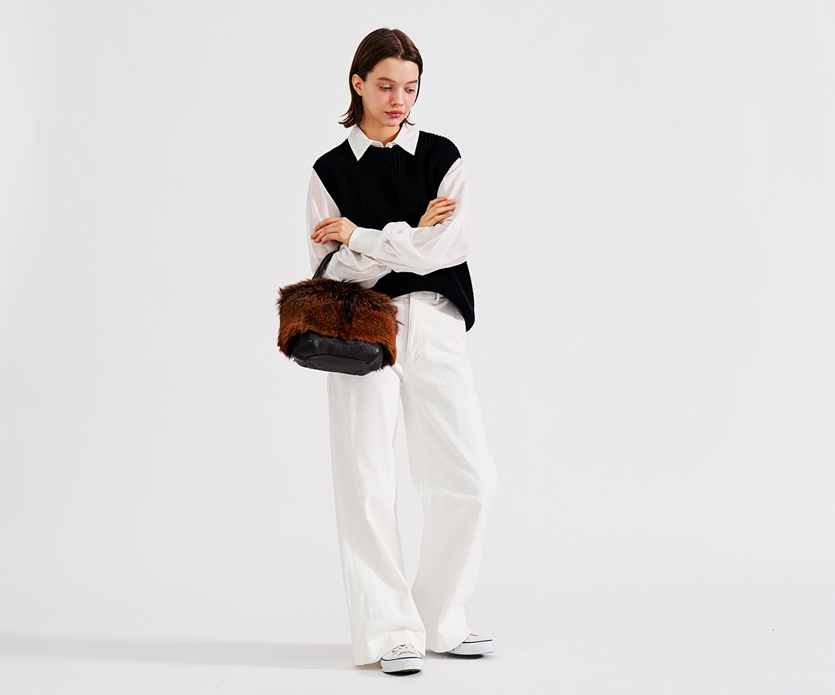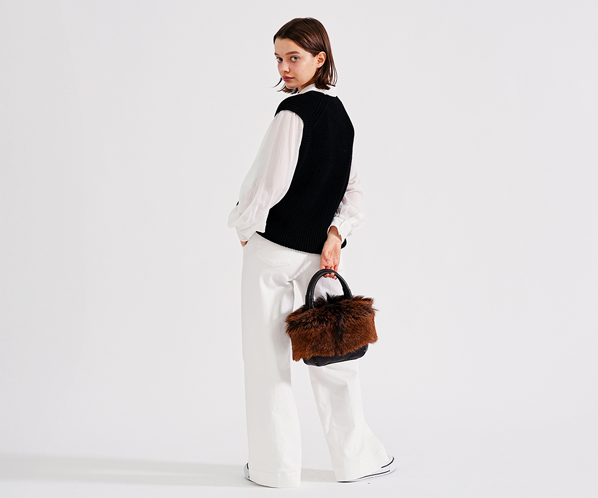 フェード感ある風合いの牛革に存在感抜群のゴートのファーを組み合わせ、野性味がありながらも、丸みのあるシルエット、洗練された仕上げ処理で上品に仕上げました。