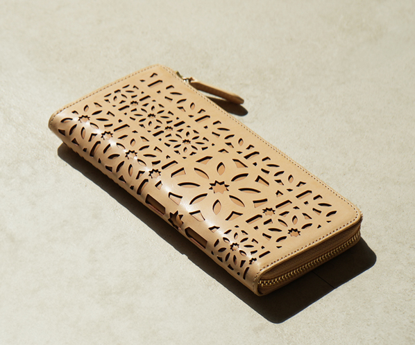 gentenのアイコンのカットワークをレーザーカットで精巧に抜いた、マルチカットワークのお財布シリーズ。