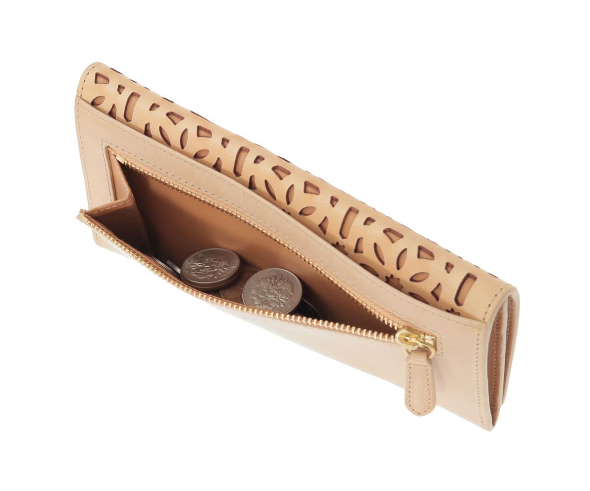 gentenのアイコンのカットワークをレーザーカットで精巧に抜いた、マルチカットワークのお財布シリーズ。