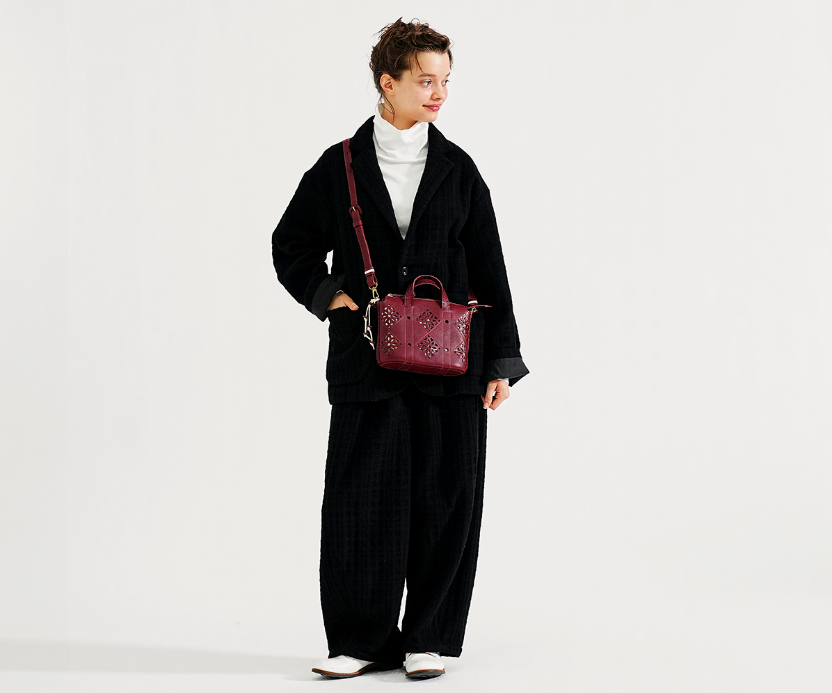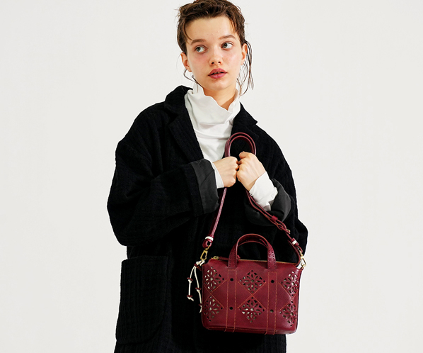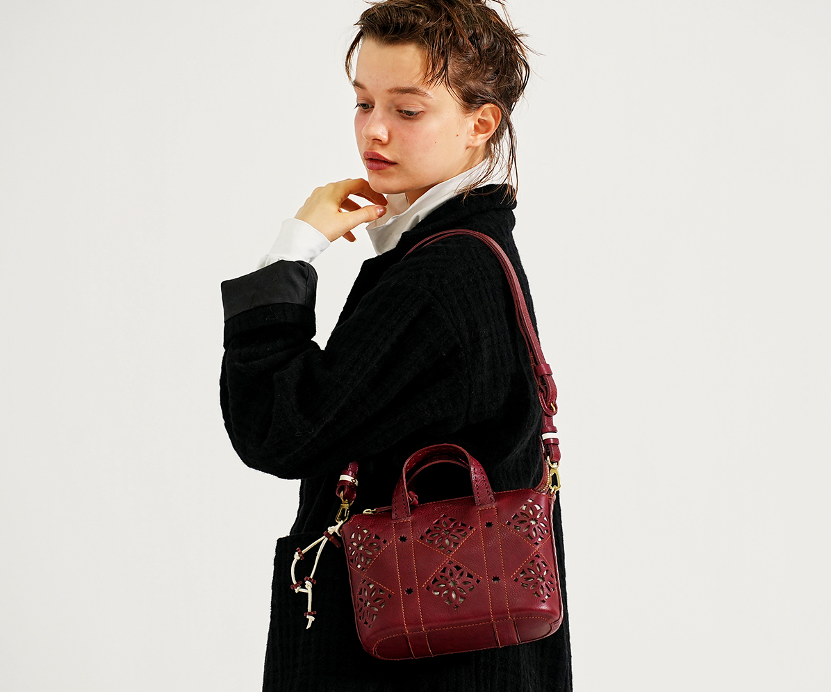 装いを華やかに引き立てるコンパクトなレザー2wayバッグ。