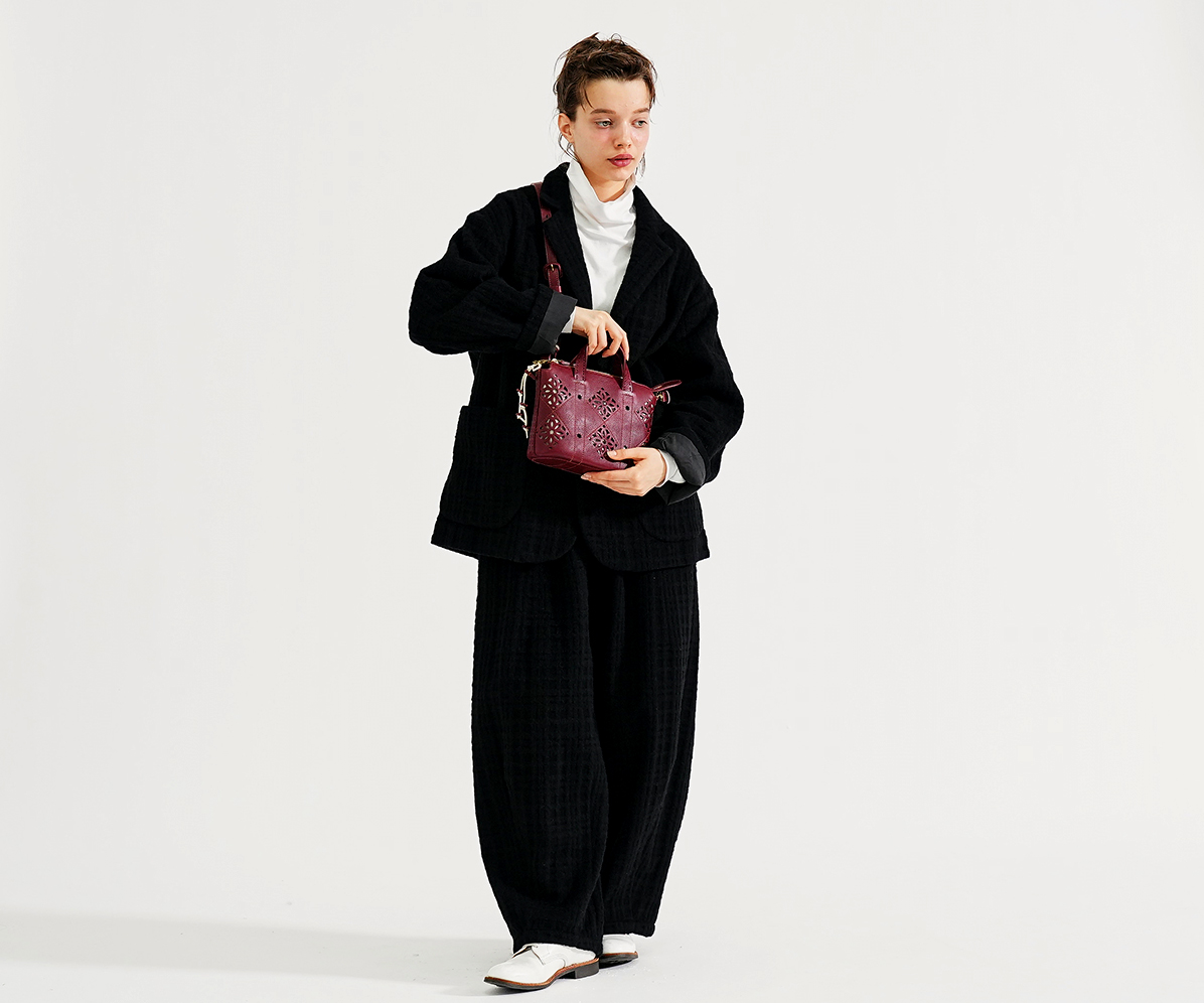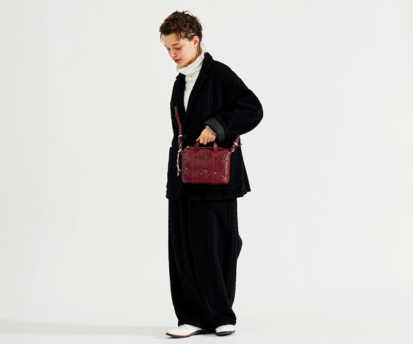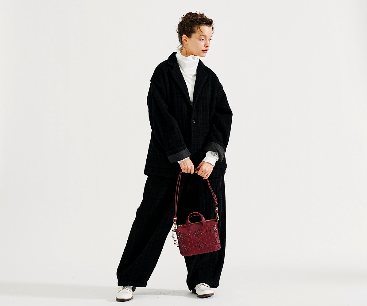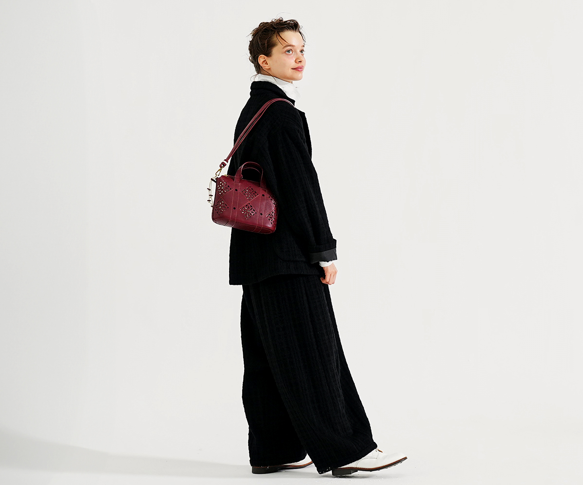 装いを華やかに引き立てるコンパクトなレザー2wayバッグ。