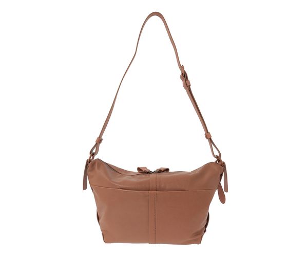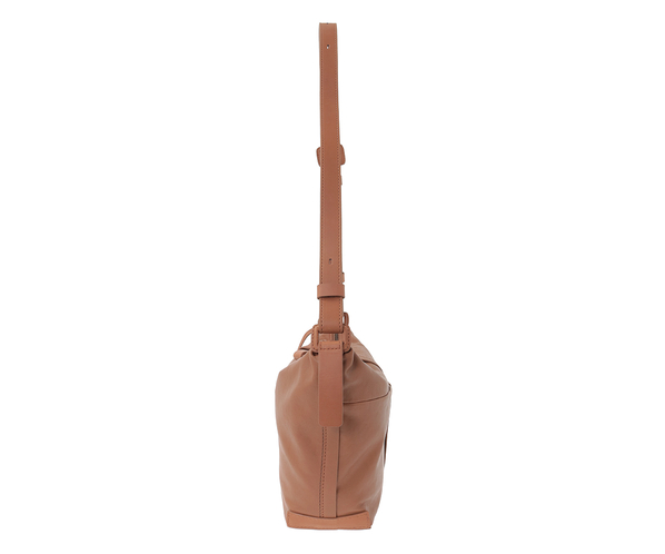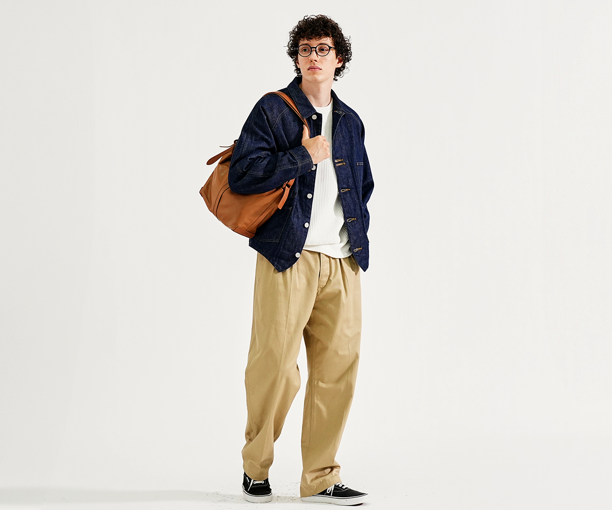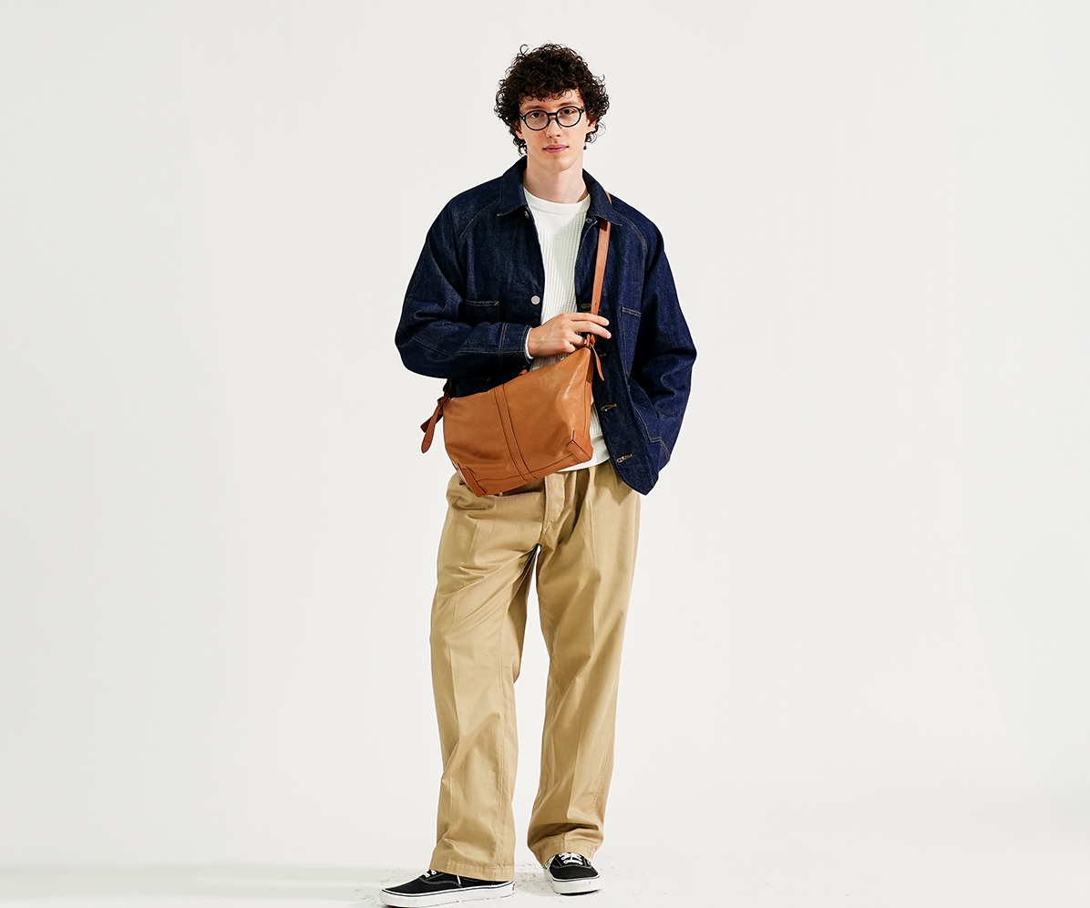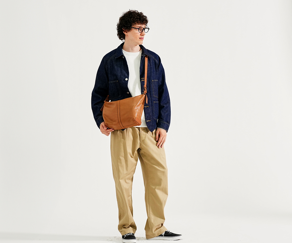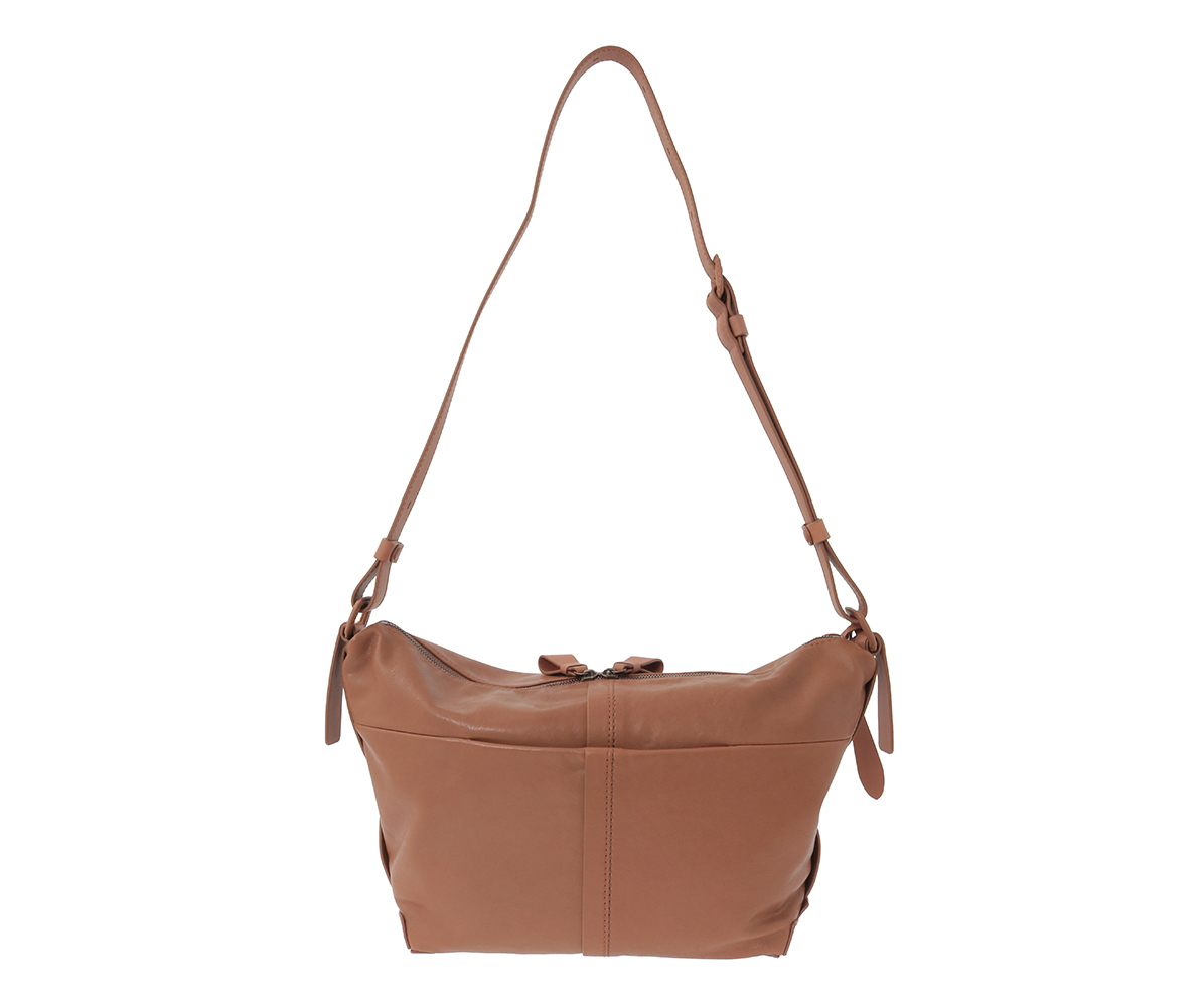 シャープなシルエットは、物を入れると丸みが出る設計。