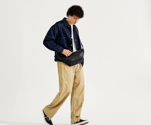 要所のコバ塗りの丁寧さ、正確なステッチワーク、精緻なカッティングなどの熟練職人が織りなす完成度の高さが、単なるプレーンでミニマルなだけのバッグとは一線を画す仕上がりとなり、シンプルな中にも存在感のある佇まいを醸し出す。