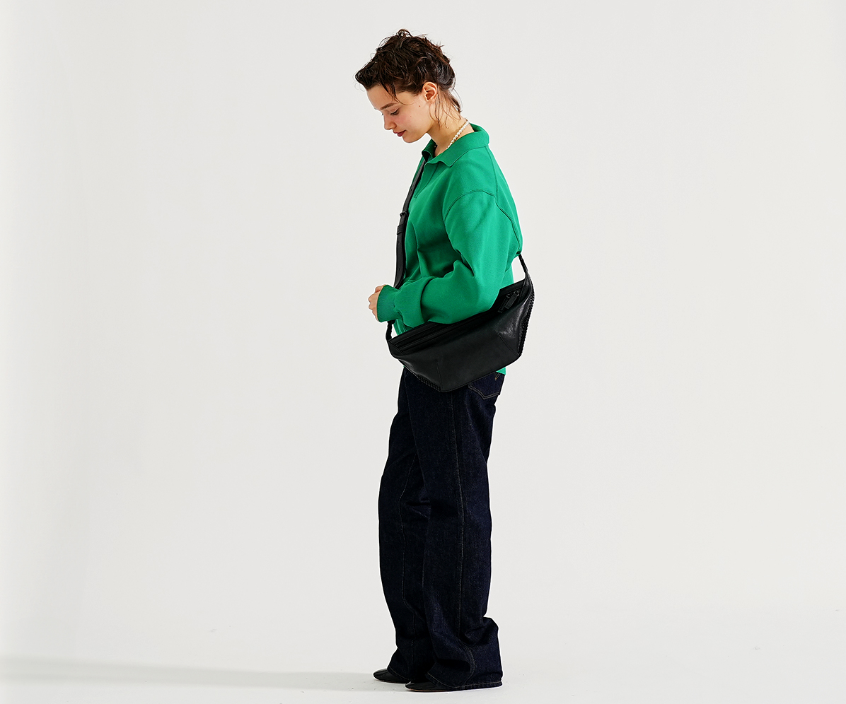 ハンドルやベルトの一部分に端正にあしらわれた革のかがりで、gentenならではの品のあるハンドクラフトの魅力をさらに深いものに。寡黙かつ美麗なバッグをその手に。