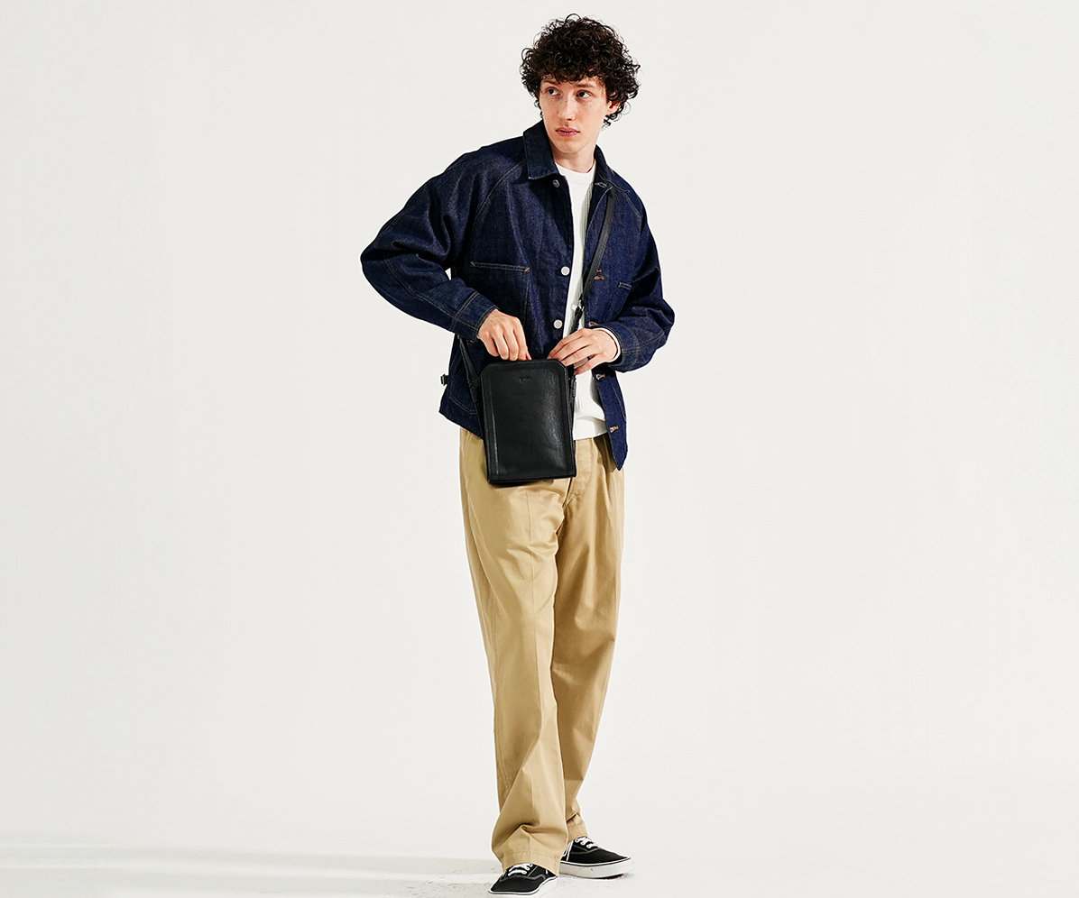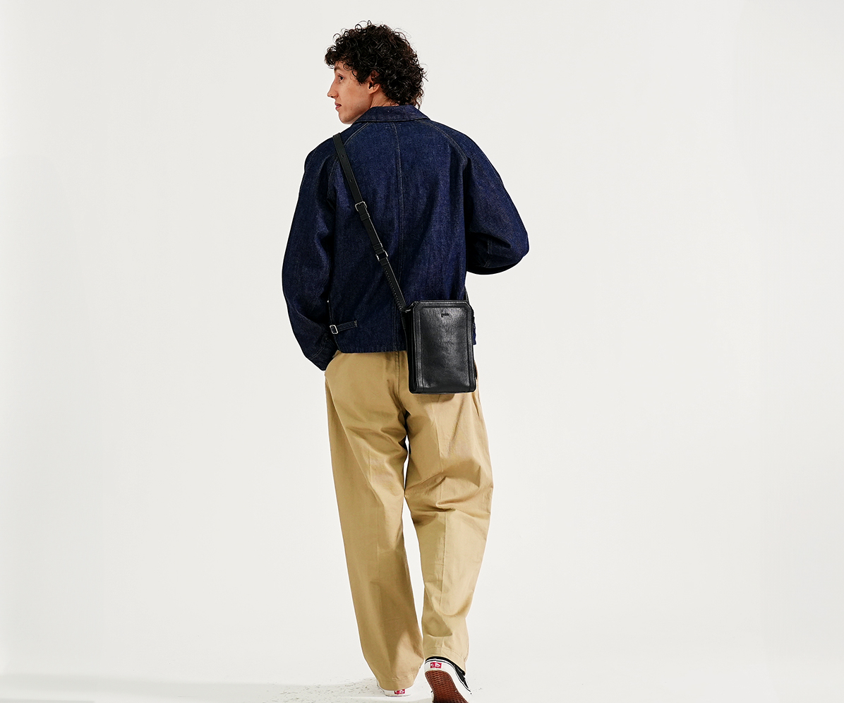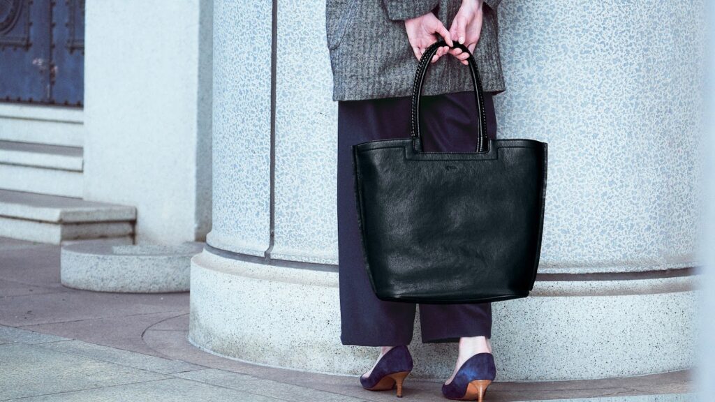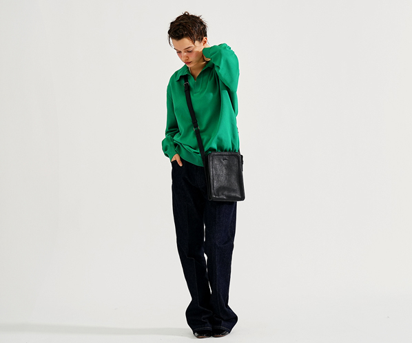 要所のコバ塗りの丁寧さ、正確なステッチワーク、精緻なカッティングなどの熟練職人が織りなす完成度の高さが、単なるプレーンでミニマルなだけのバッグとは一線を画す仕上がりとなり、シンプルな中にも存在感のある佇まいを醸し出す。