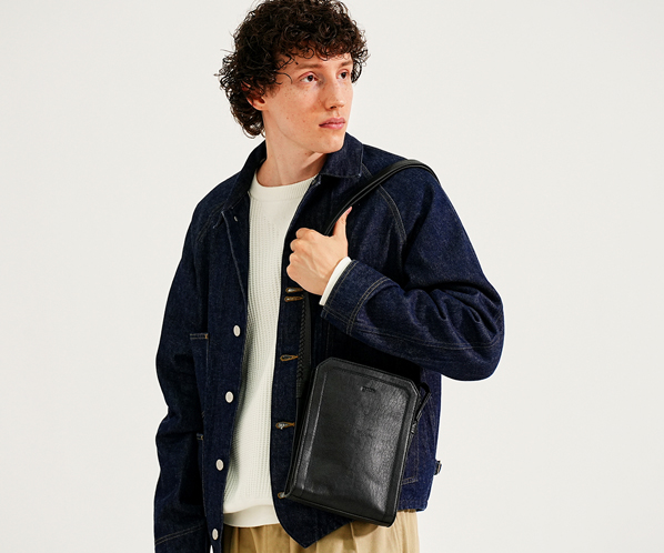 ハンドルやベルトの一部分に端正にあしらわれた革のかがりで、gentenならではの品のあるハンドクラフトの魅力をさらに深いものに。寡黙かつ美麗なバッグをその手に。