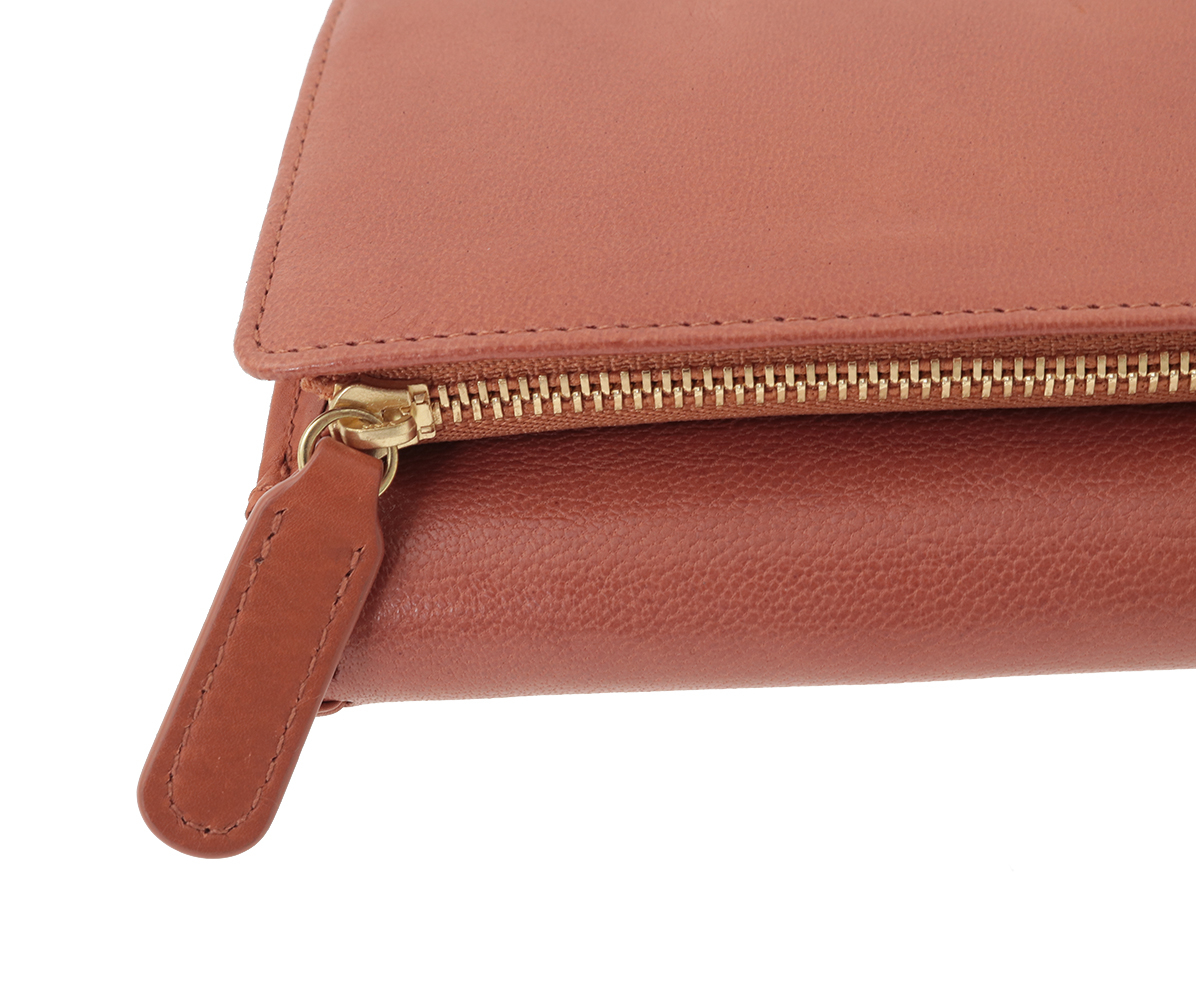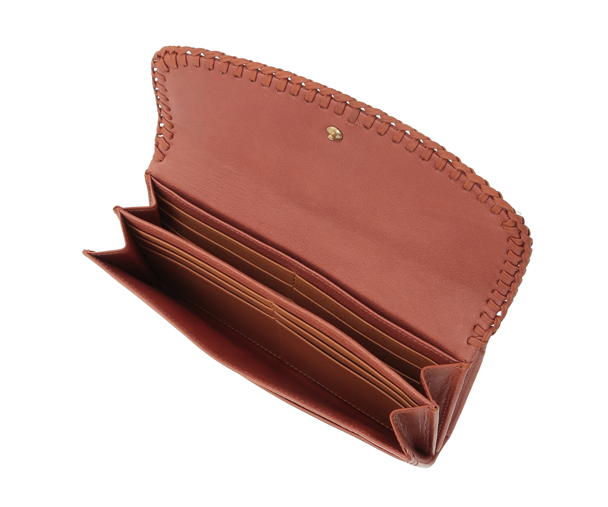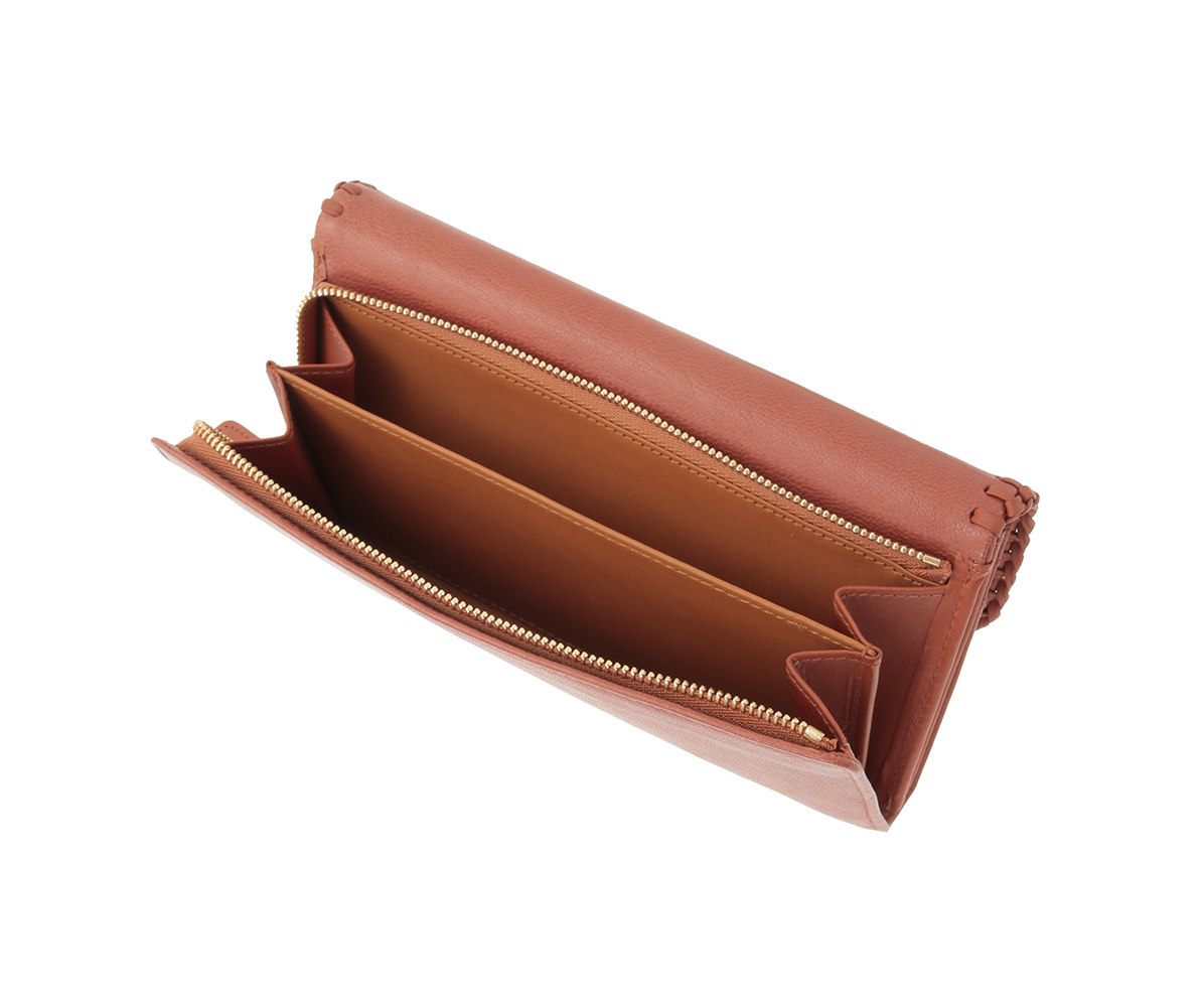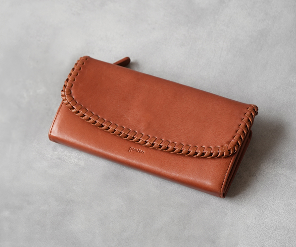 フラップのある作りは、開けるたび、シープの質感を肌に感じ、癒されます。革のかがり部分はカーフを無双仕立てにした革紐にすることで、丈夫でより洗練された仕上がりに。