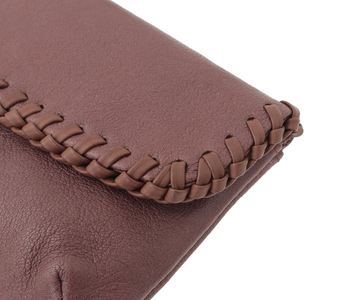 フラップのある作りは、開けるたび、シープの質感を肌に感じ、癒されます。革のかがり部分はカーフを無双仕立てにした革紐にすることで、丈夫でより洗練された仕上がりに。