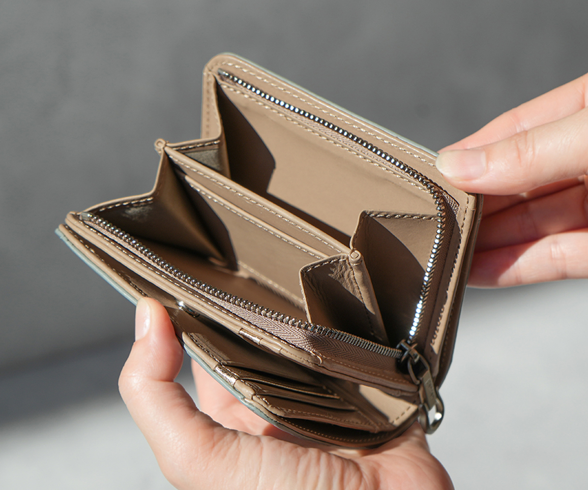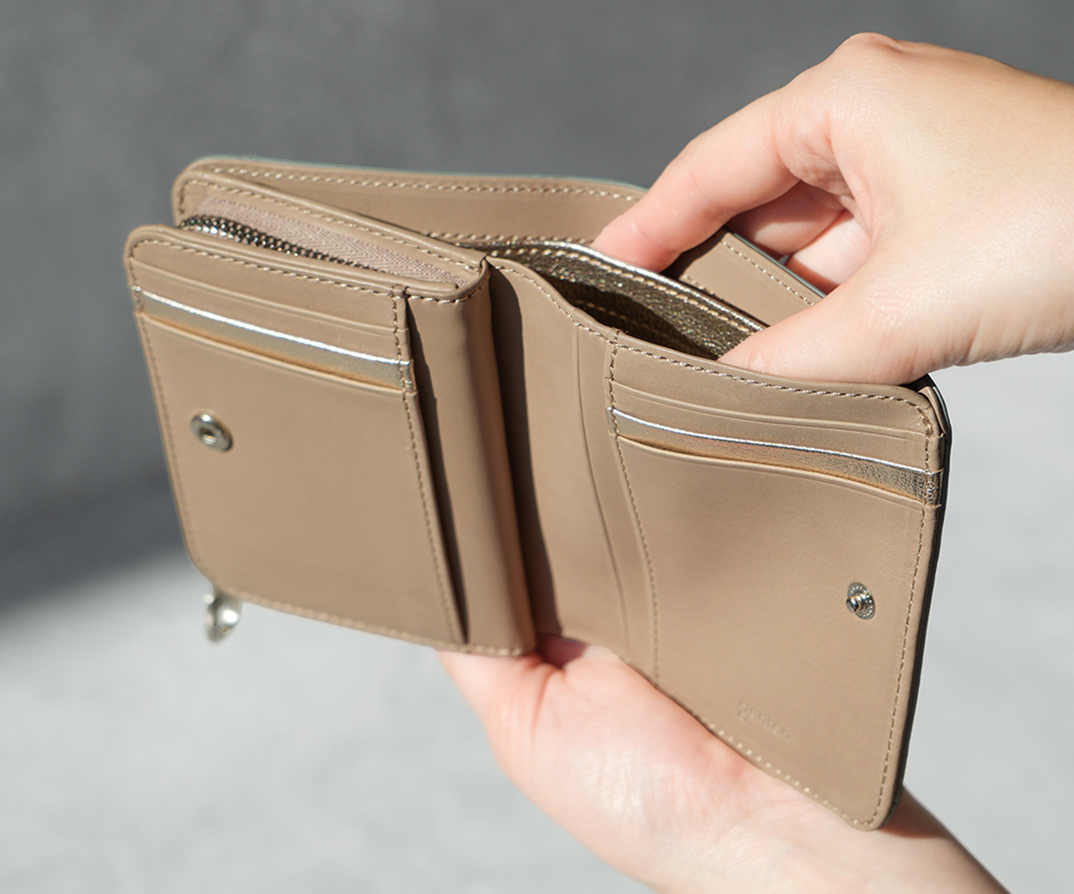 白鞣しの下地から染色をしているため、経年しても赤味が出にくく色が冷めていくのが特徴。非常に軽量で、きめ細やかな手触りをお楽しみください。