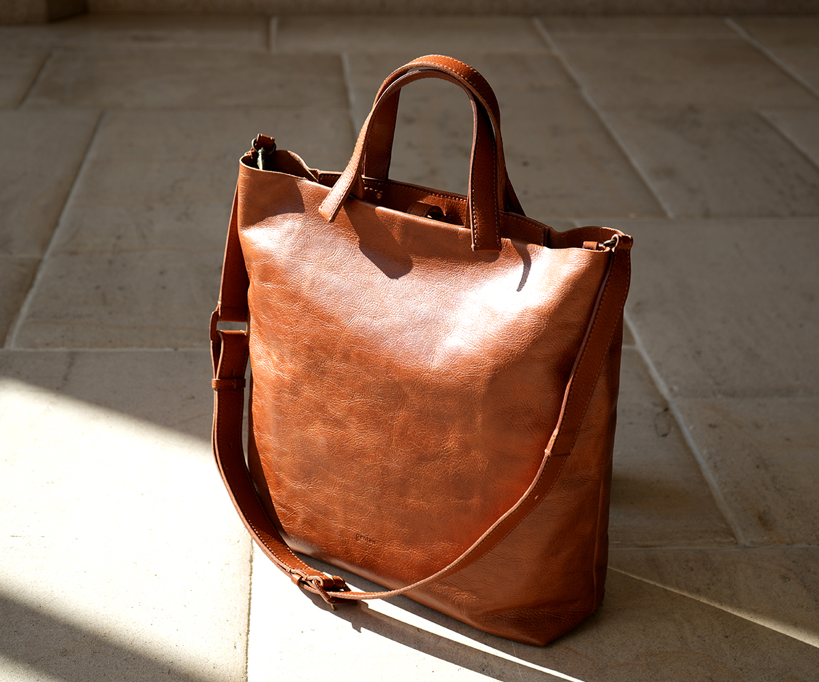 手に取るたびに、革そのものの持つ息吹きを楽しめるバッグです。