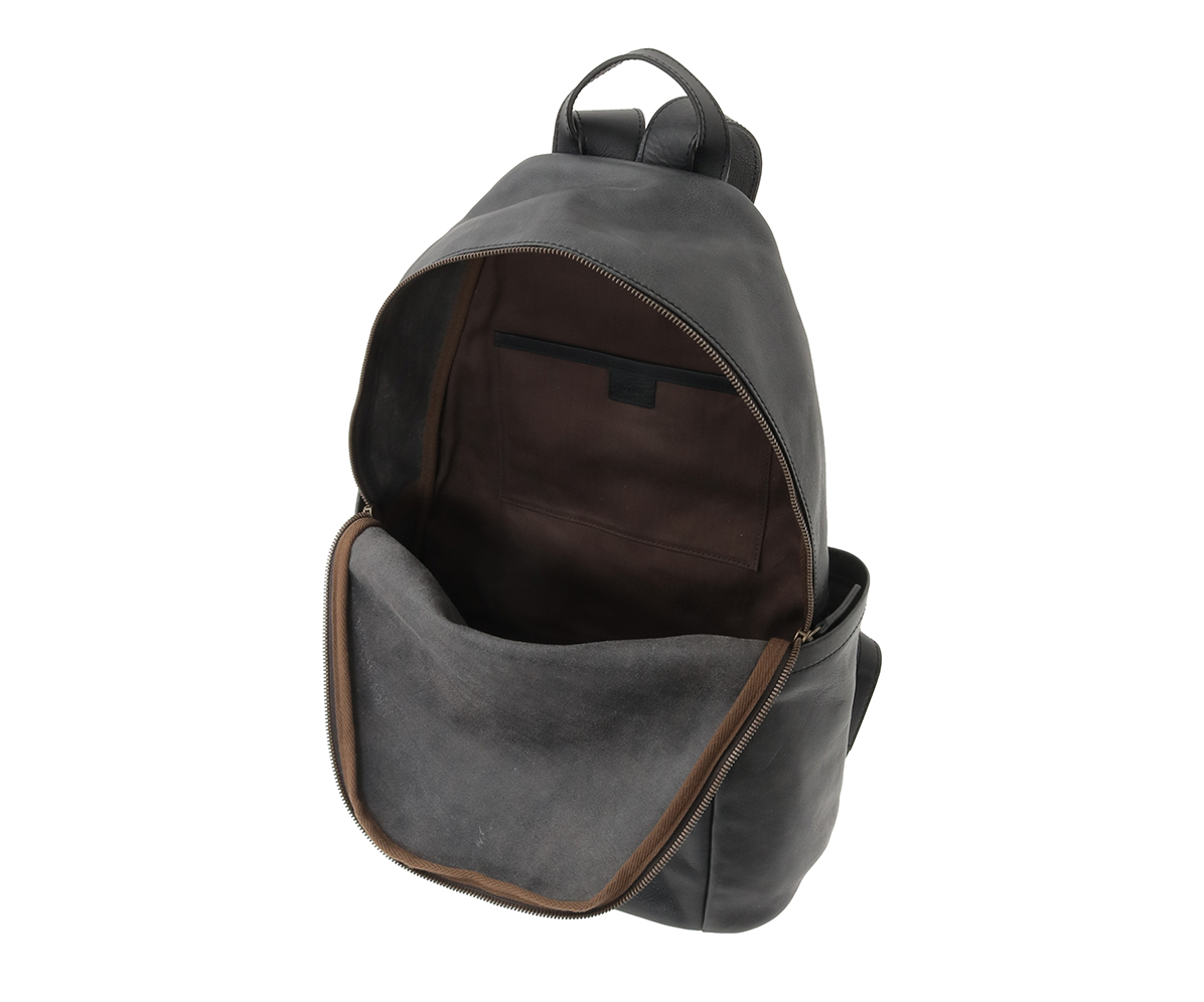 本体のキップレザーは、キズ、しみ、トラを一切排除せず、ありのままの姿の本革ならではの魅力を最大限に引き出した仕上がり。