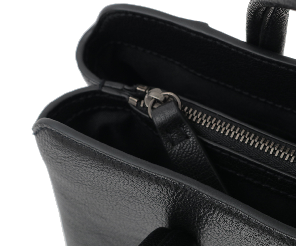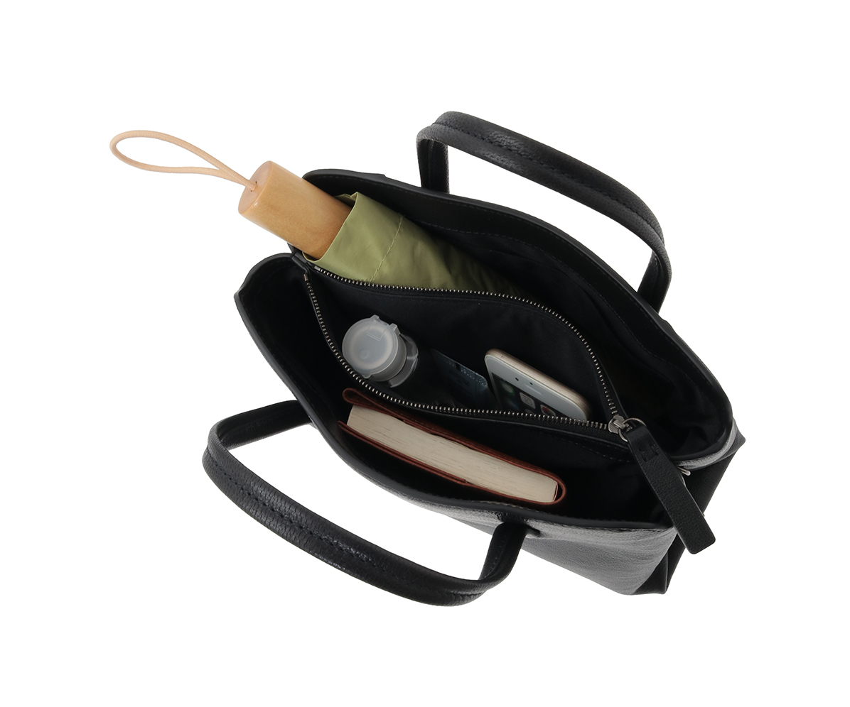 内装にはすべてファスナーを付け、さらに3層にすることでコンパクトながらも整理してお使い頂けます。