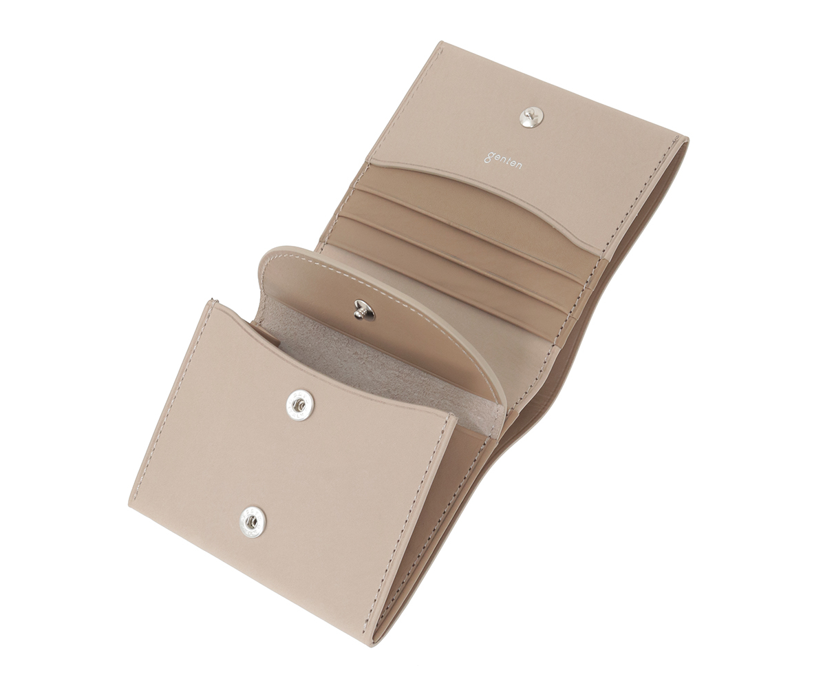 手に取ったときにわかる、上質なスムース仕上げのカーフのなめらかな質感を存分に楽しめるよう、お造りしたコンパクトなお財布シリーズ。