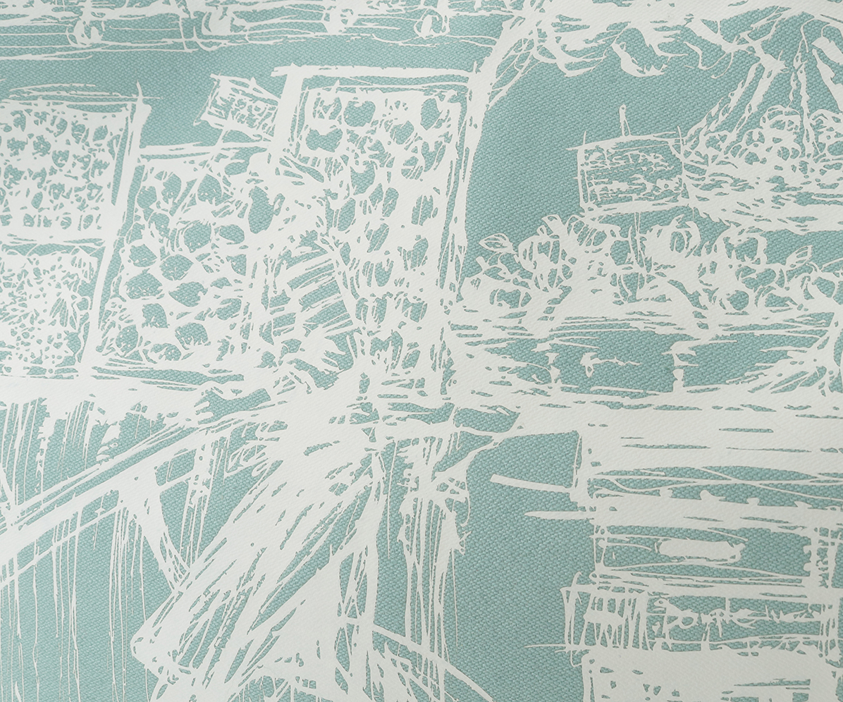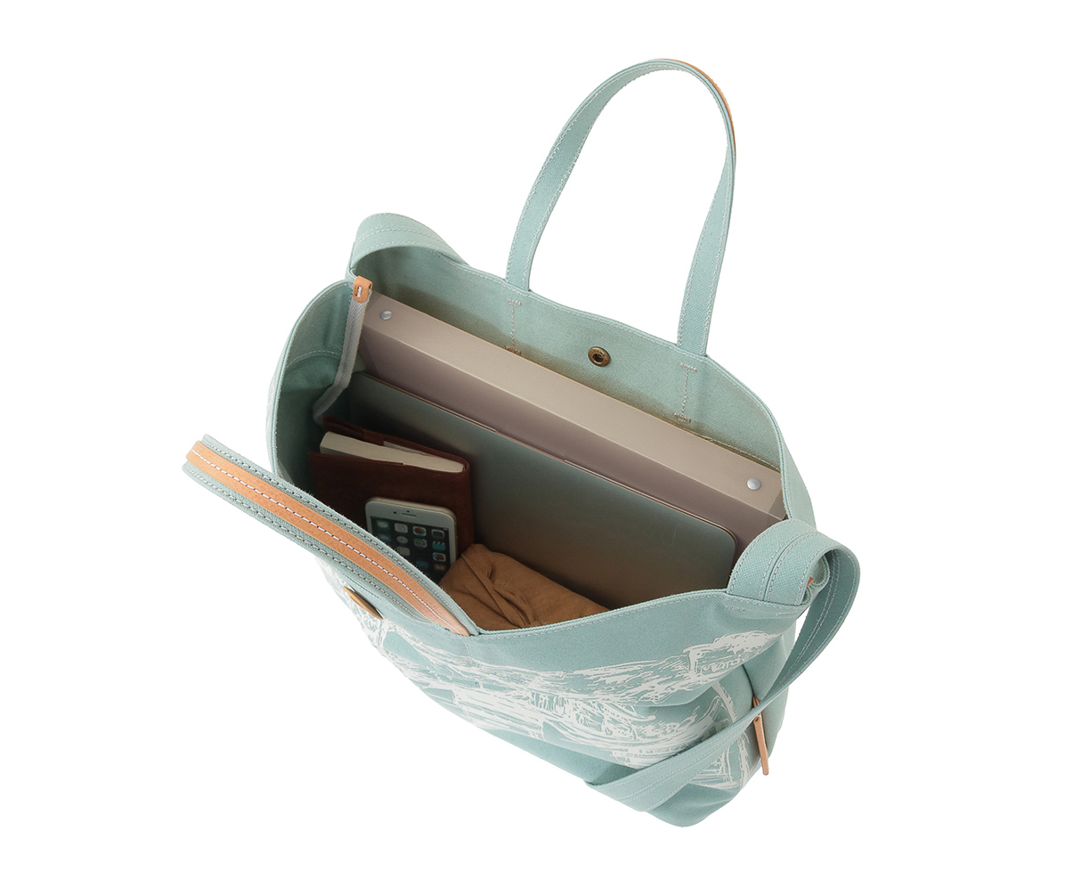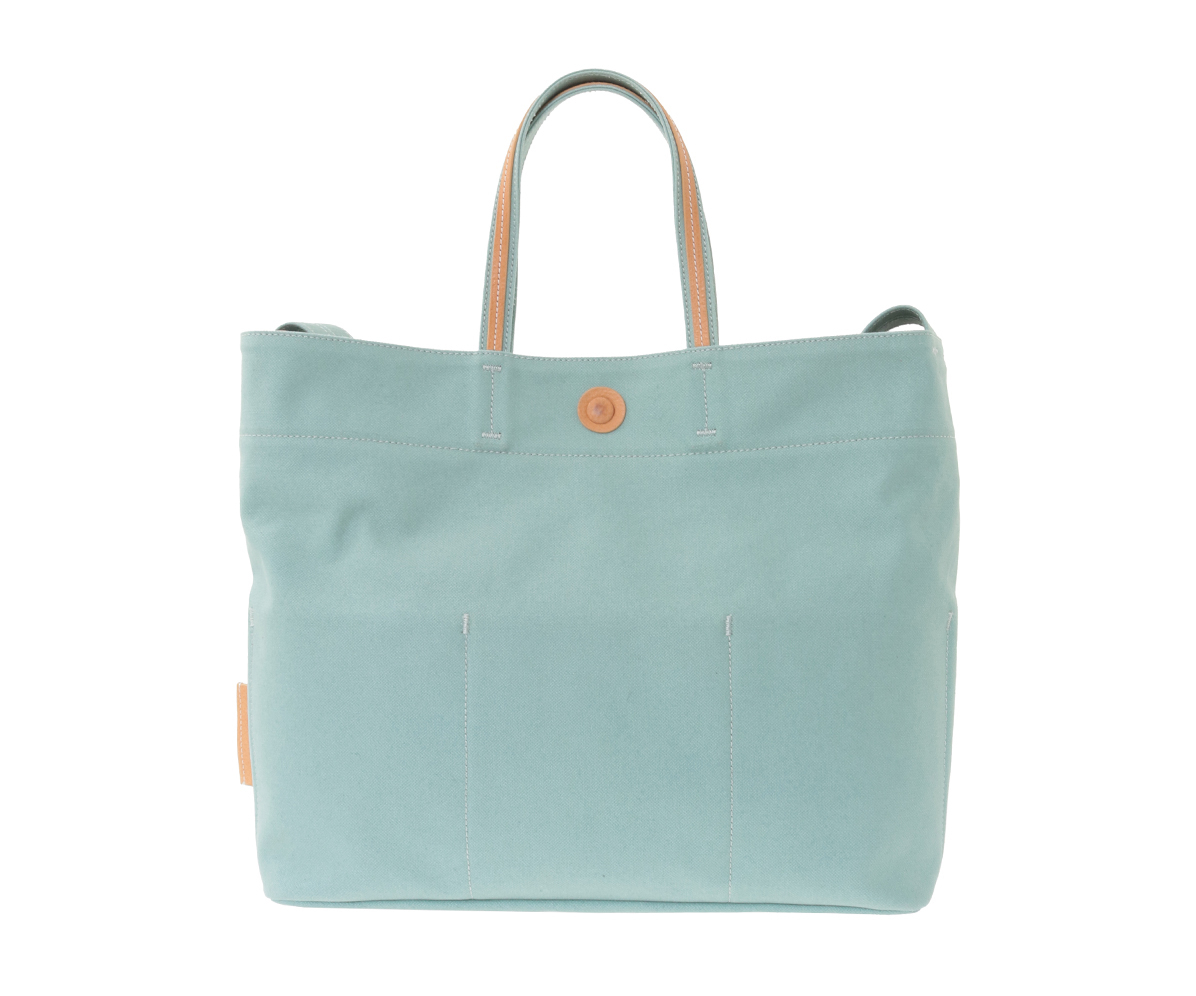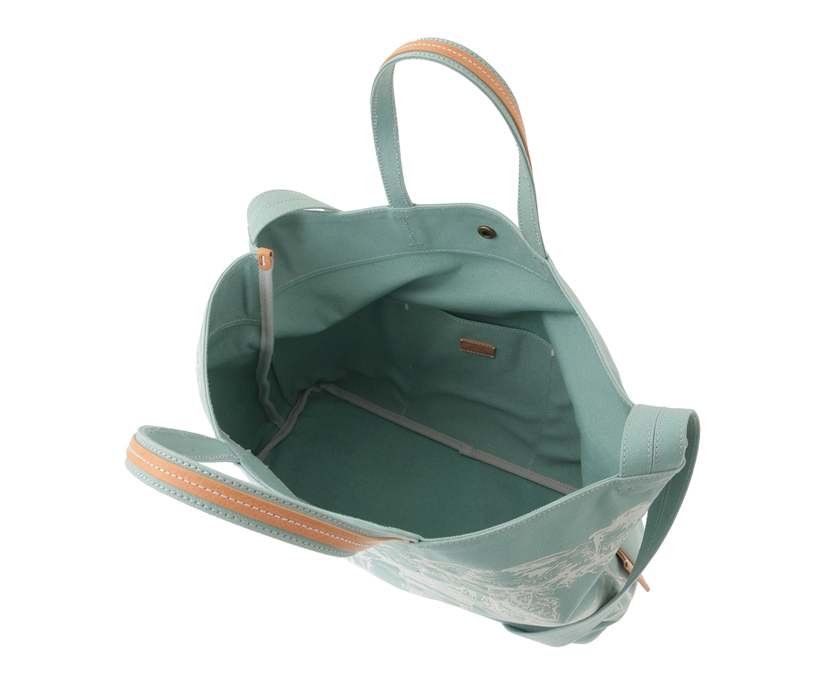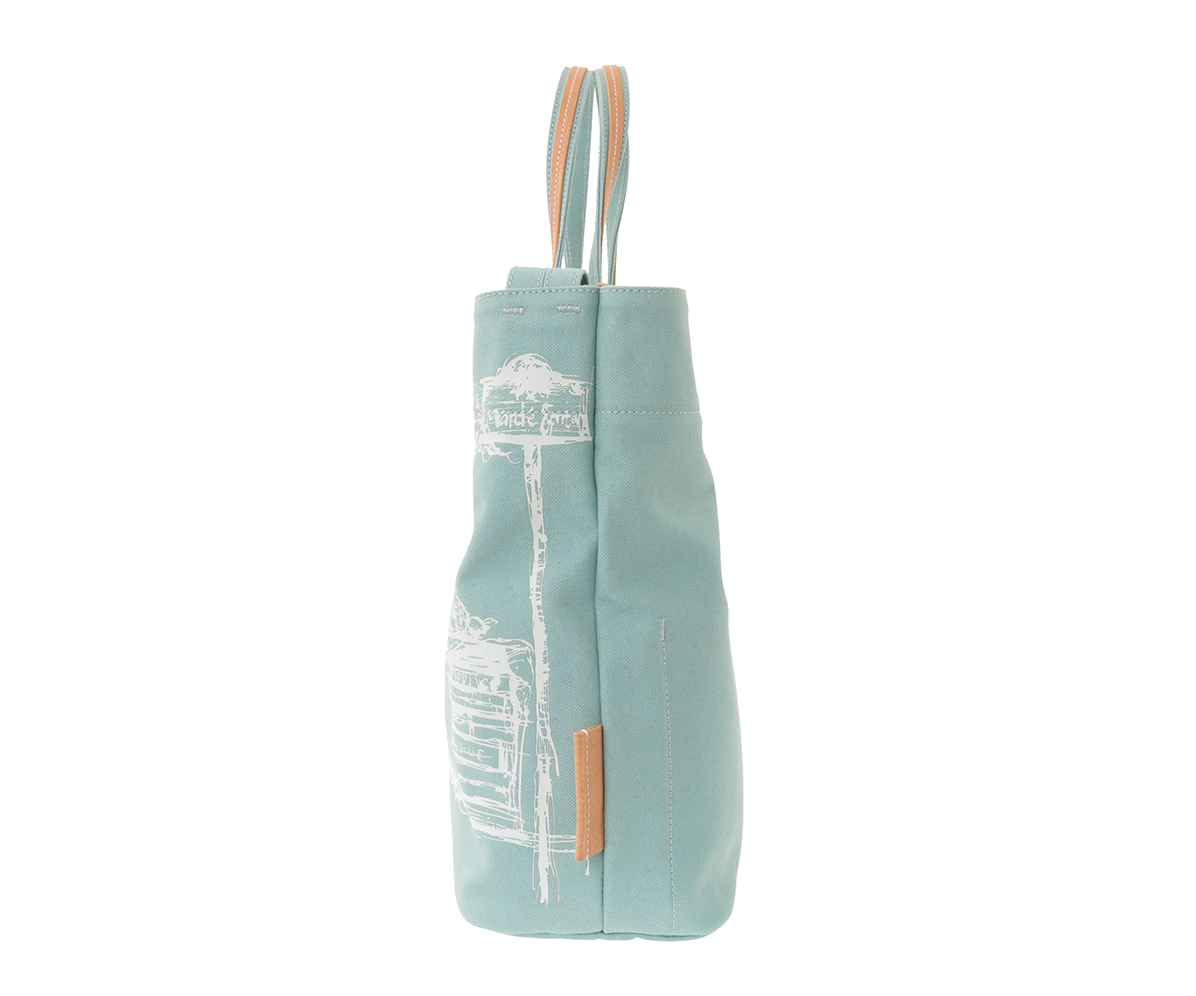 青空市場の活気ある風景をプリントしたブロークンツイルの2wayキャンバスバッグ。