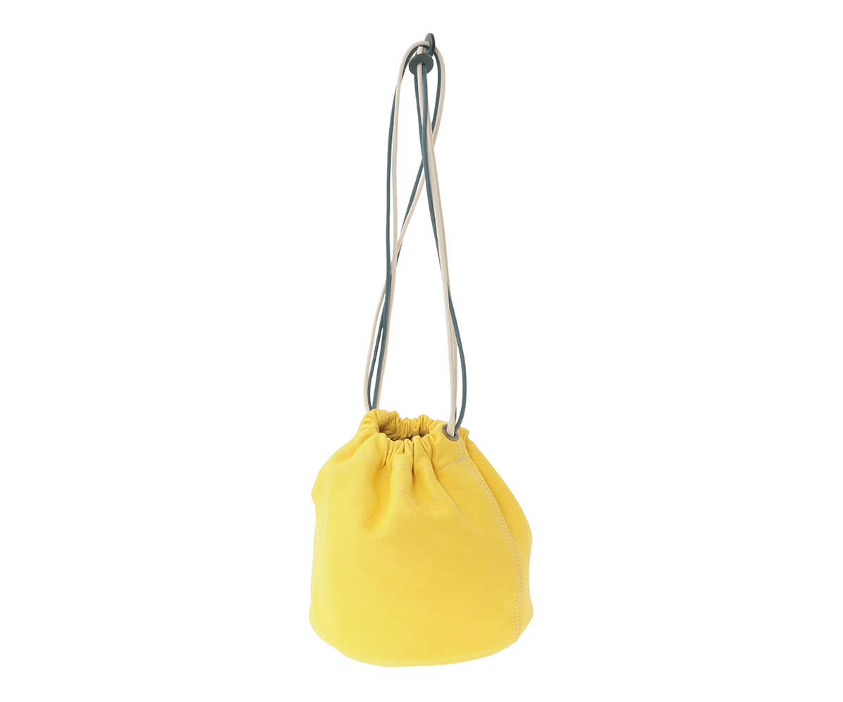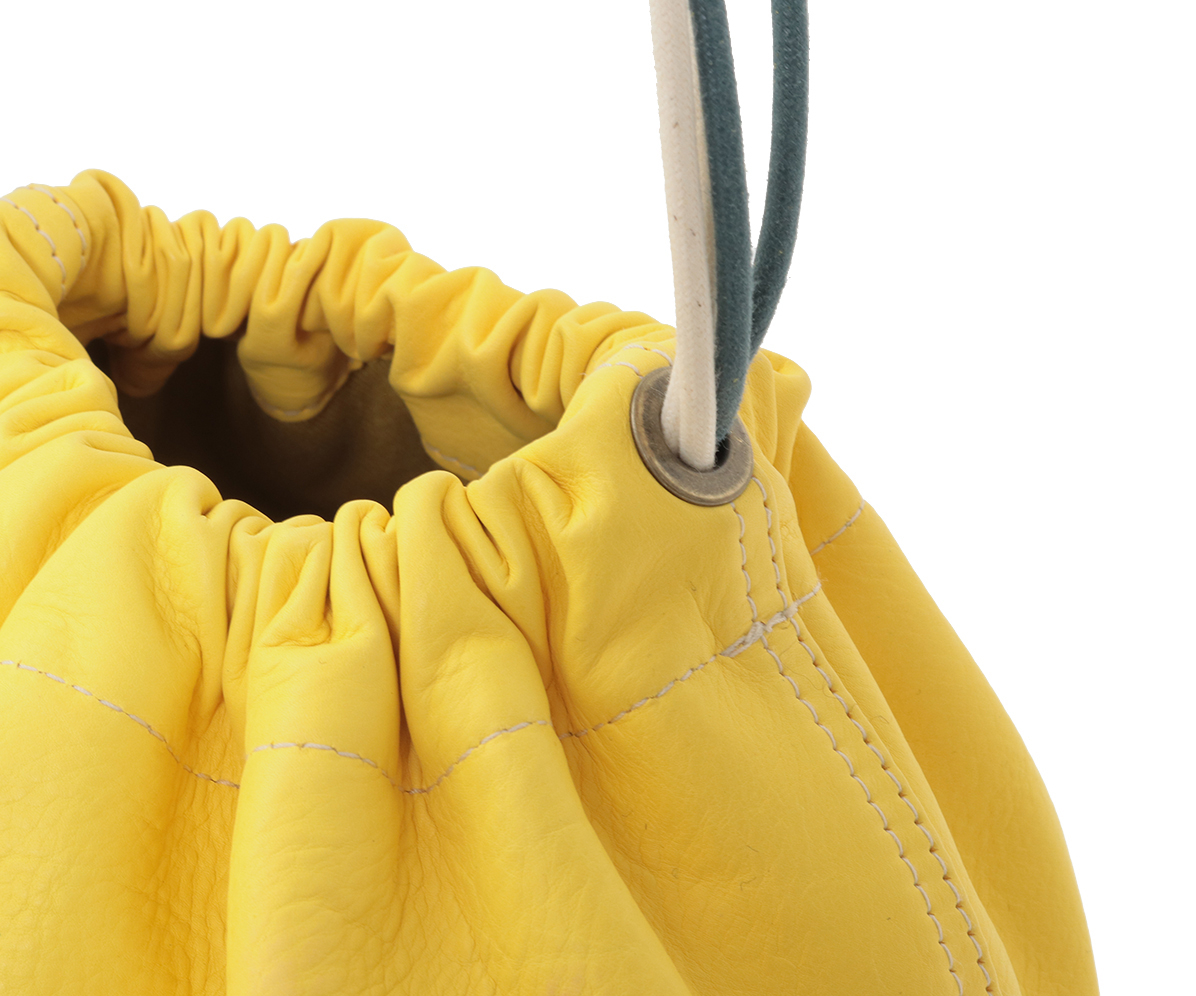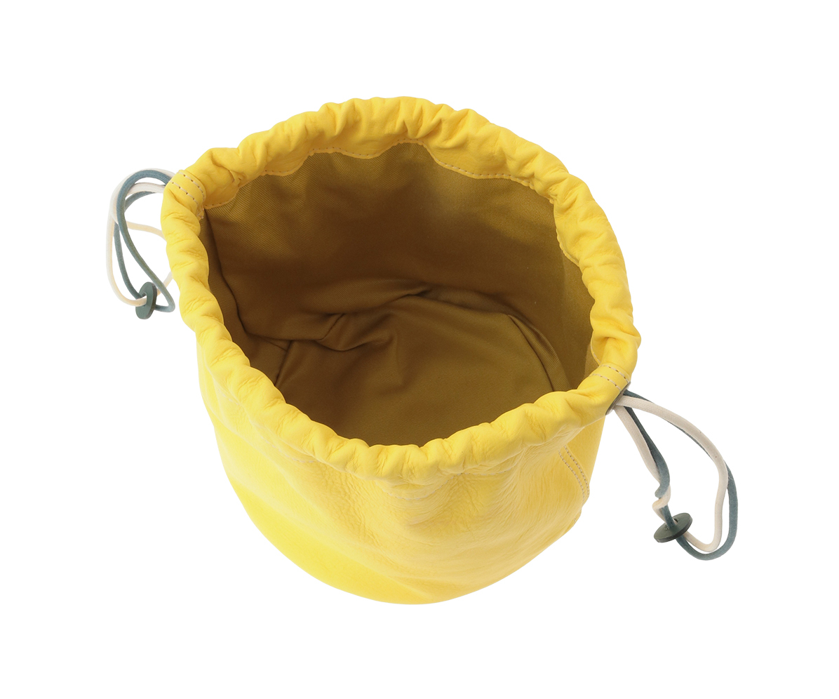 高級なカーフ素材で仕上げた巾着袋。