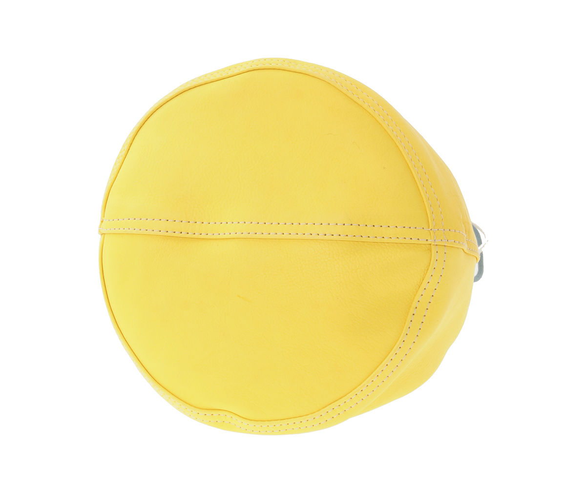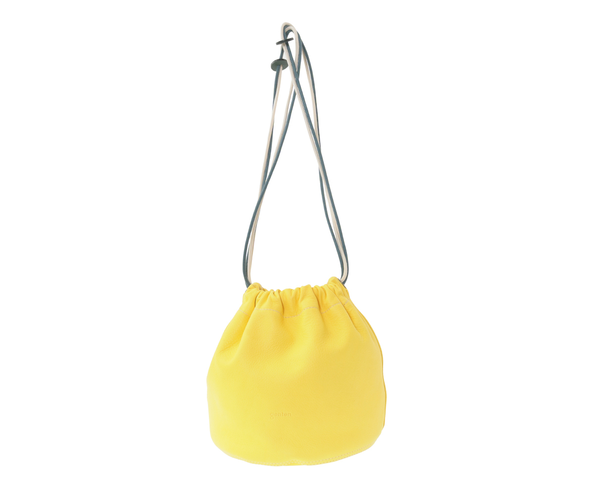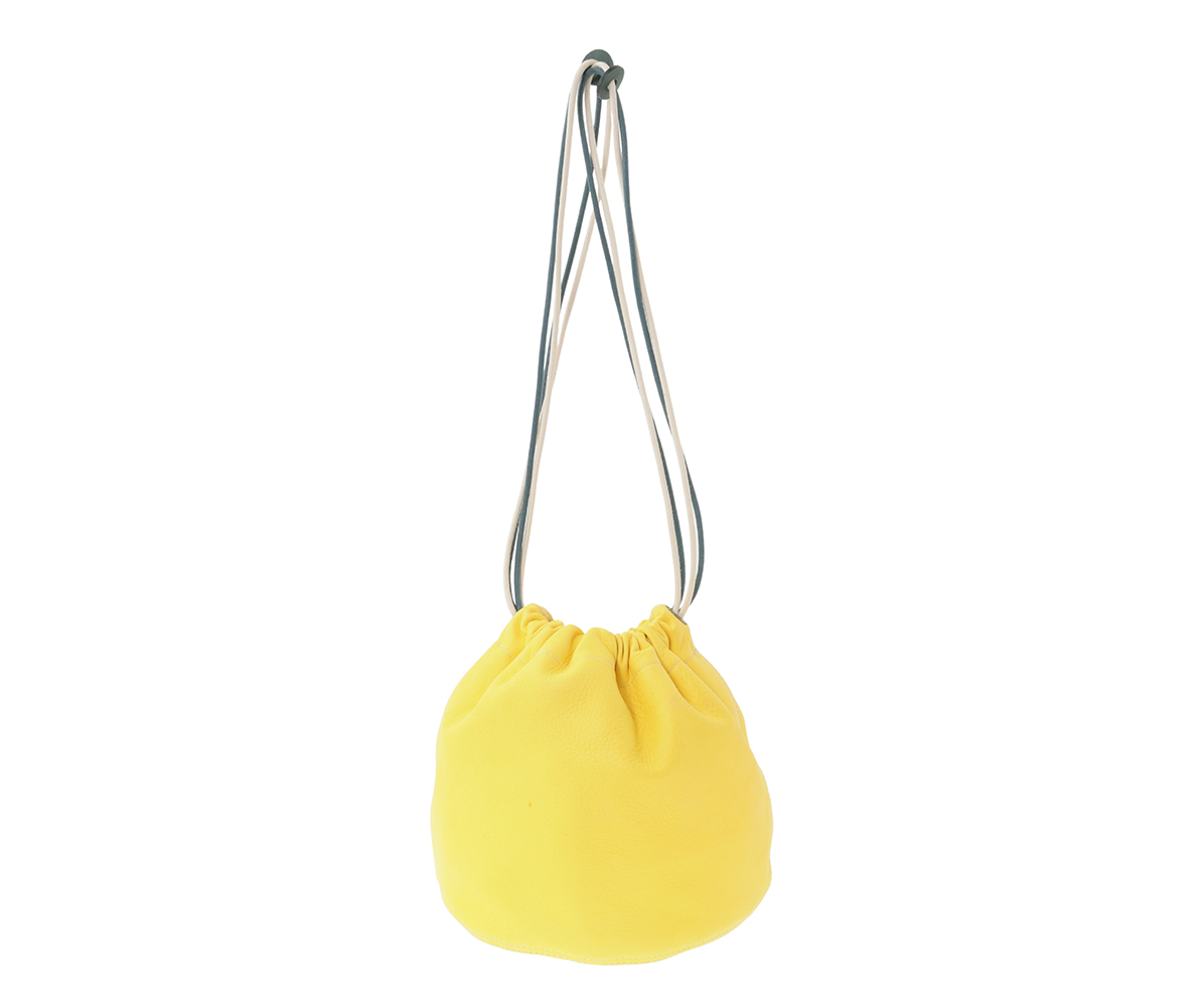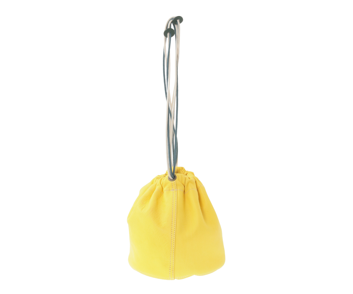 高級なカーフ素材で仕上げた巾着袋。