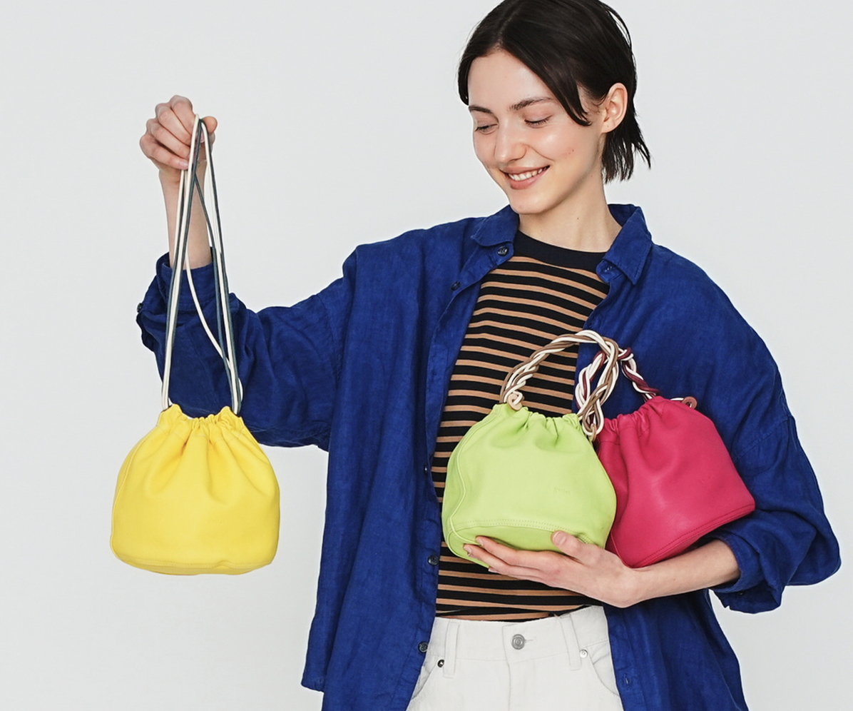 春夏コレクション「フルーツマーケット」では、旬の果物をモチーフに、イチゴ、キウイ、レモンなどを革でフレッシュに表現しました。
