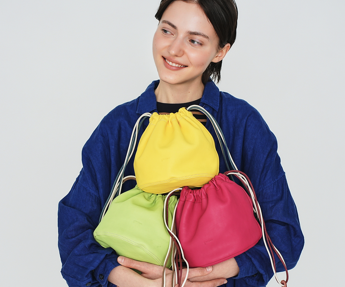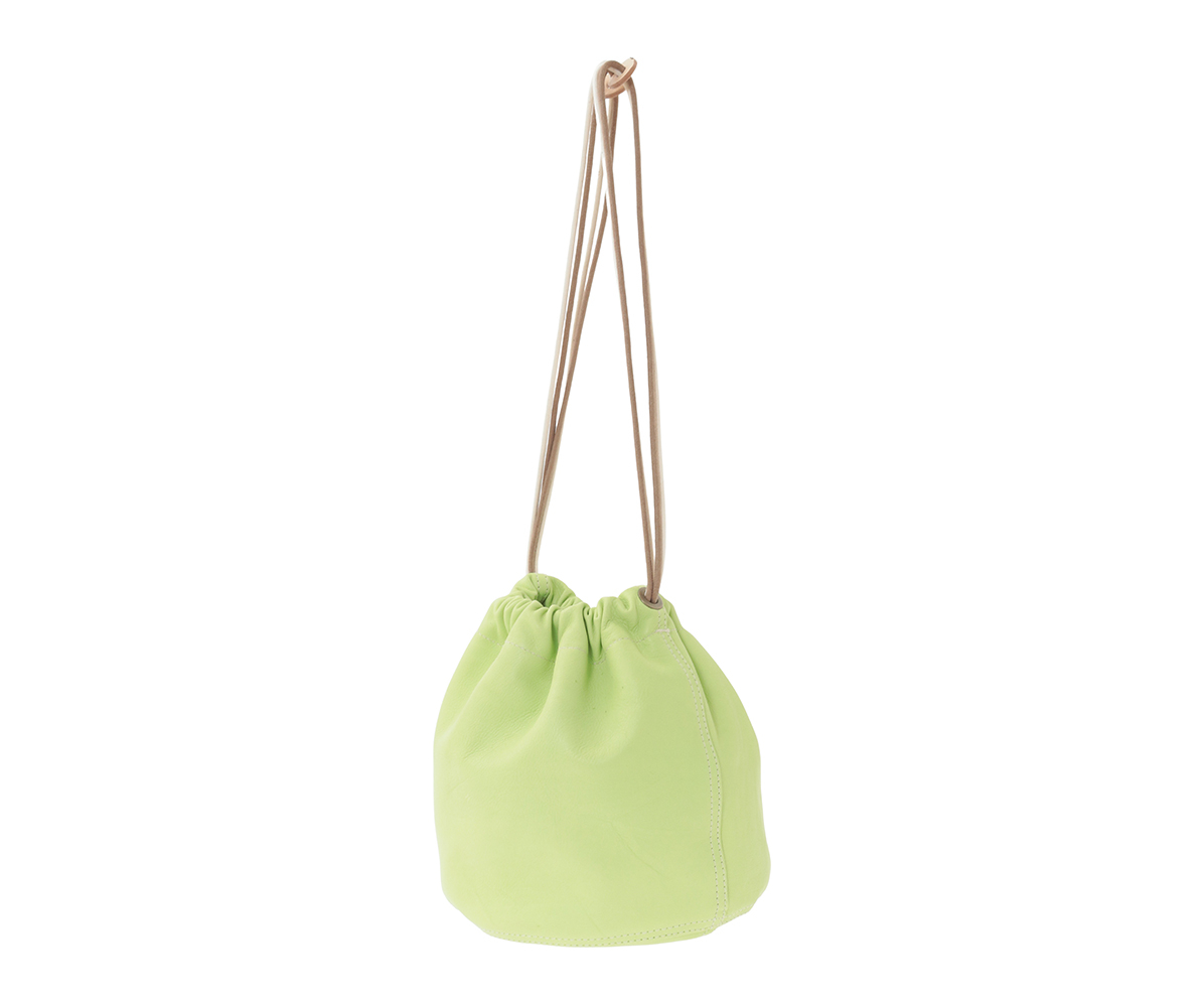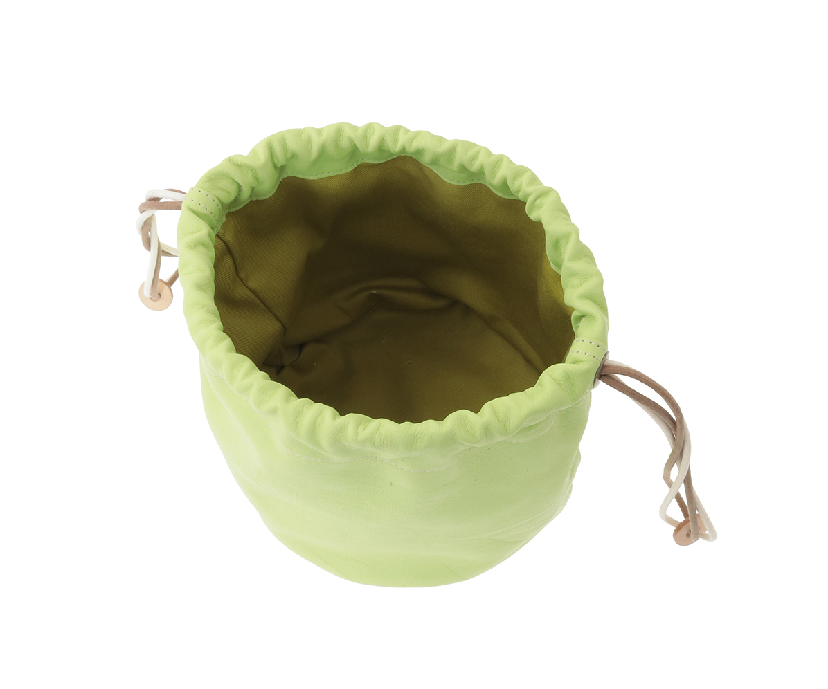 高級なカーフ素材で仕上げた巾着袋。