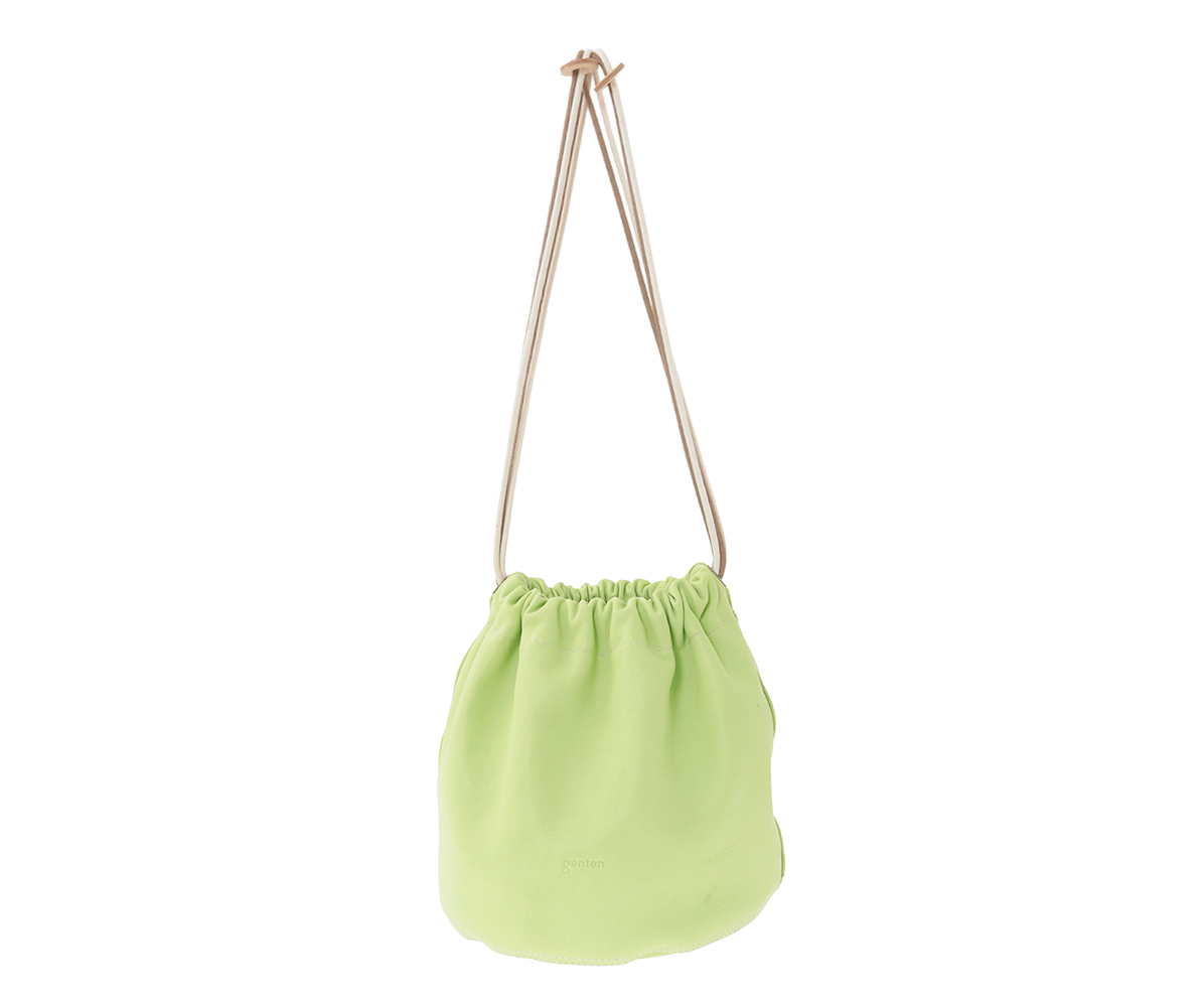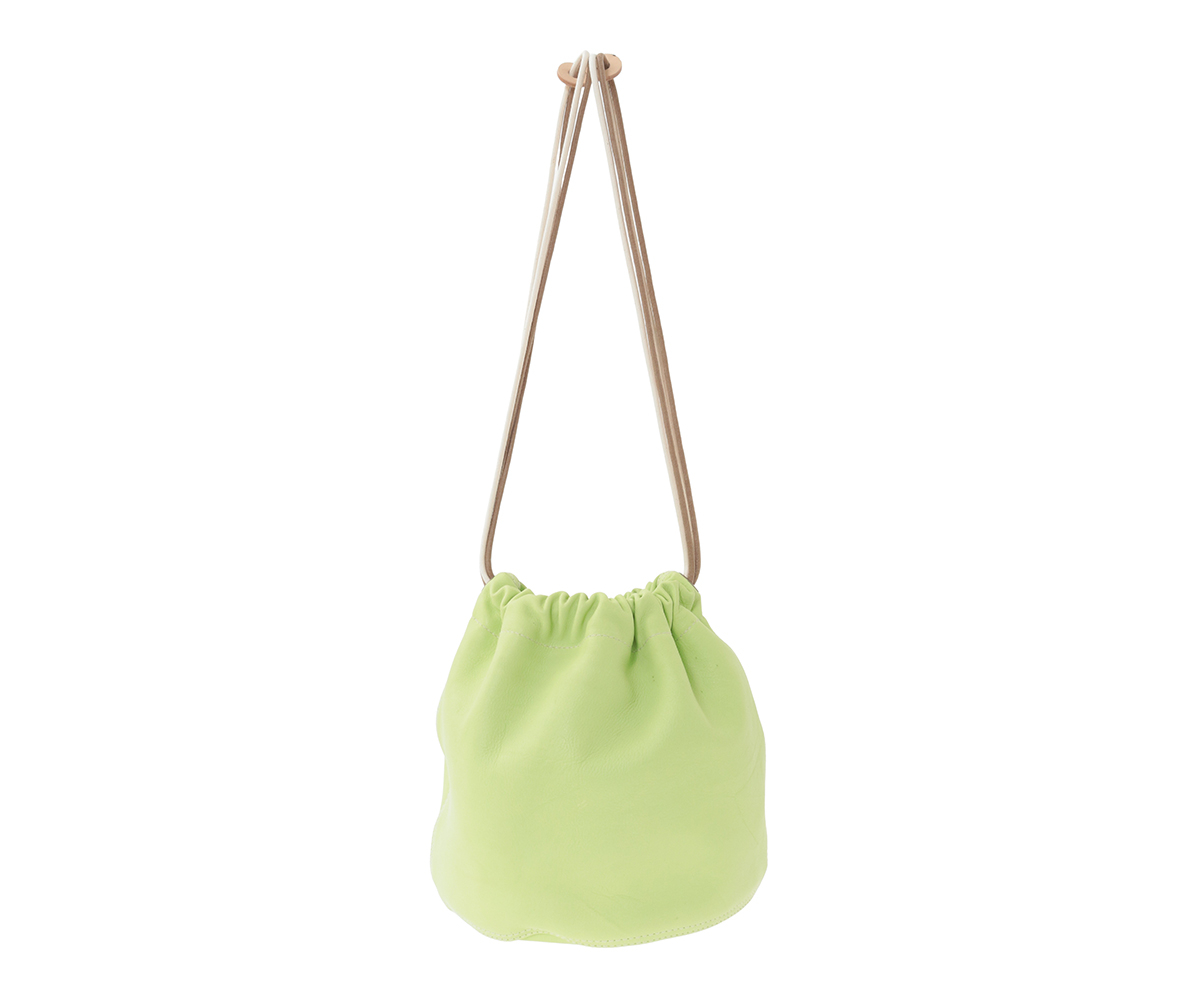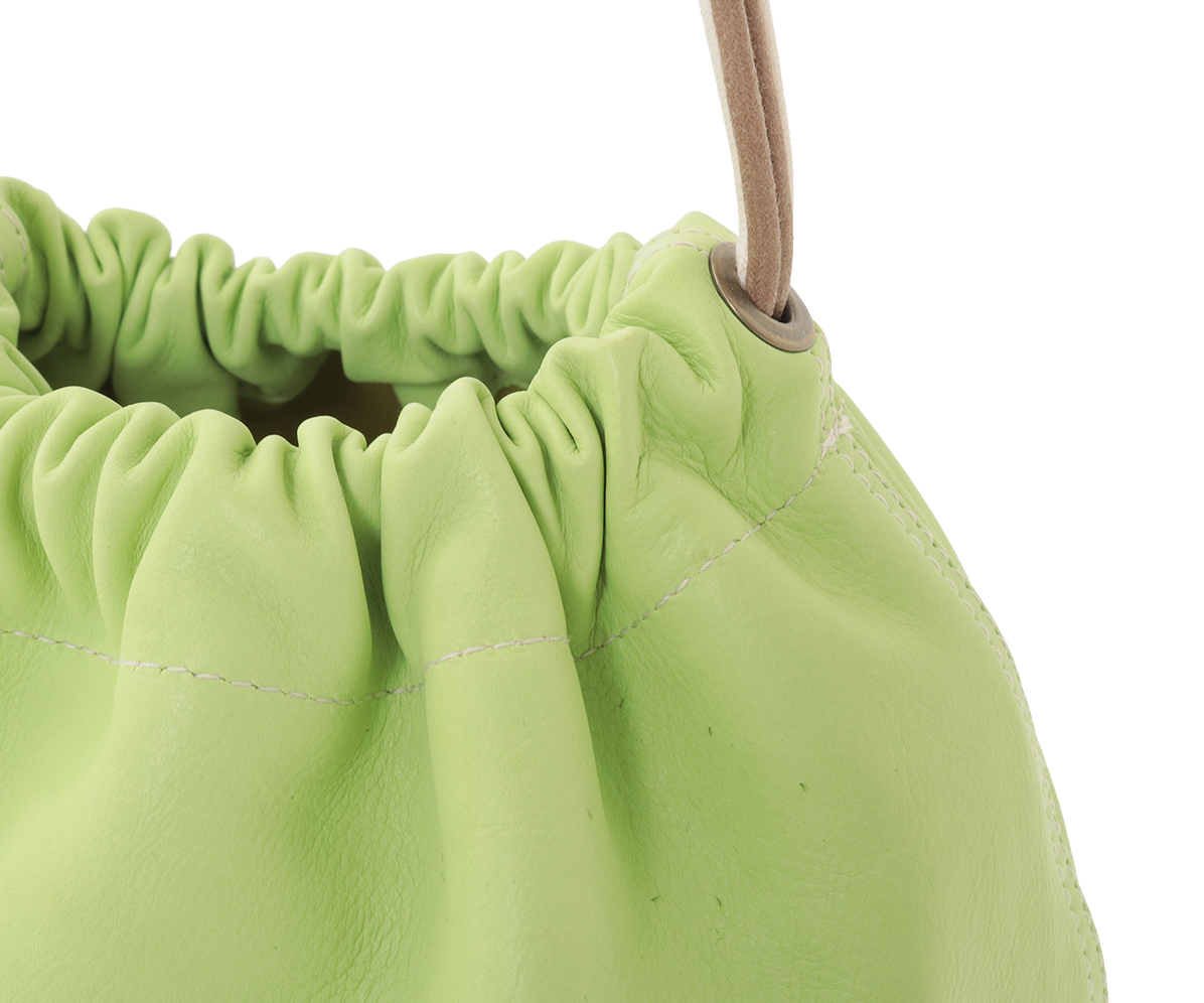 高級なカーフ素材で仕上げた巾着袋。