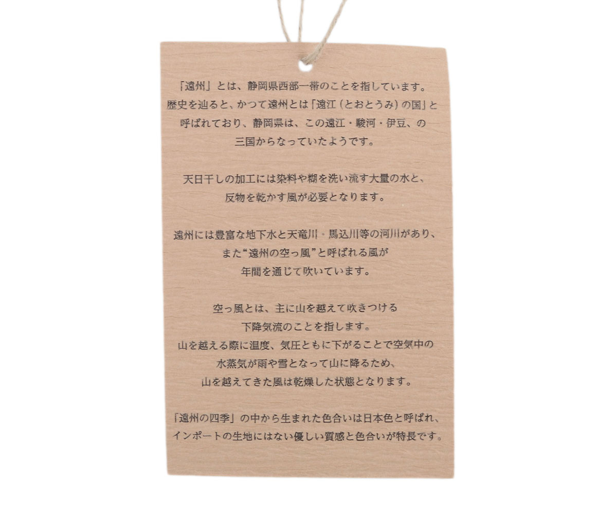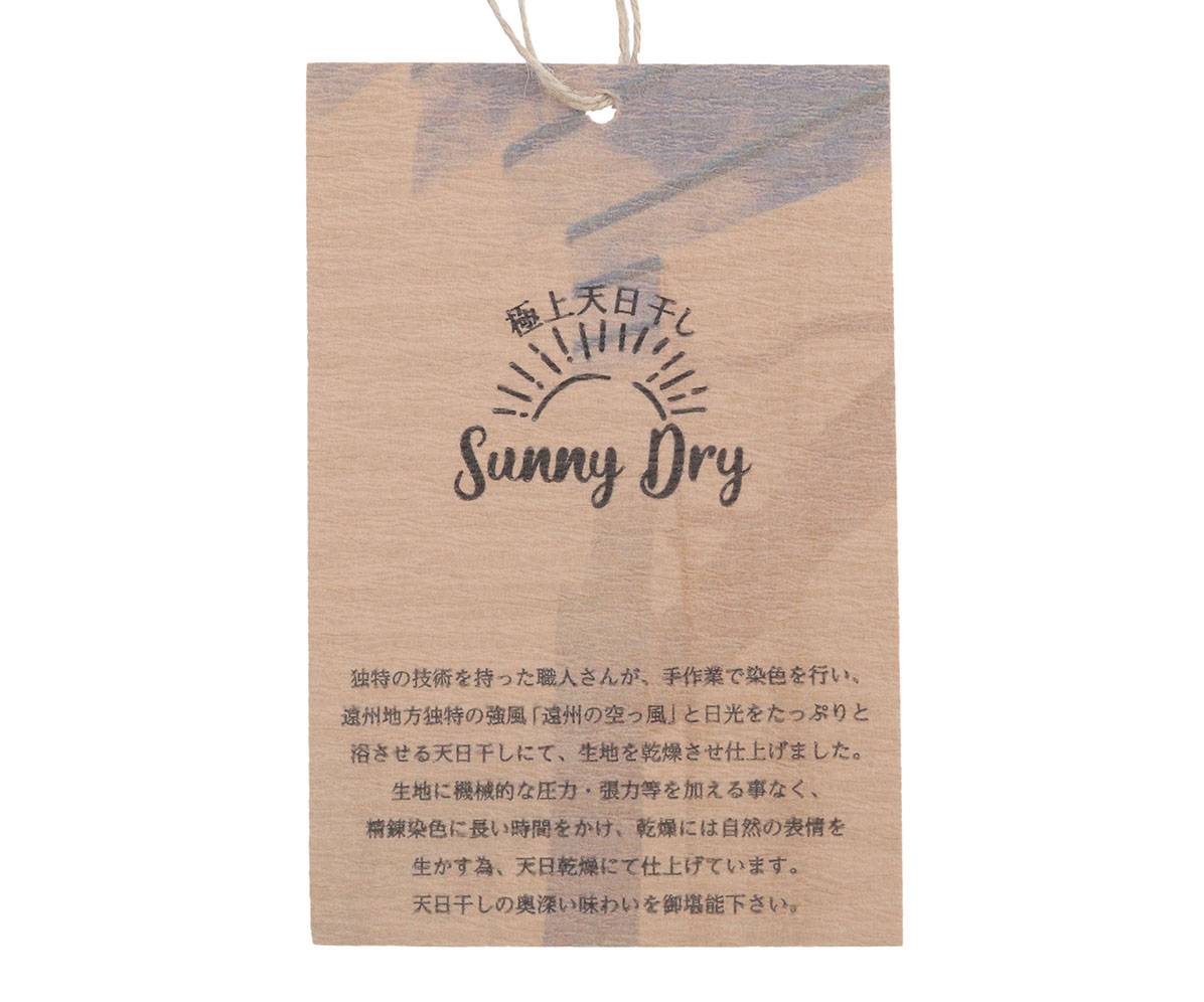 綿を高密度に織り上げたブロードを、職人の手作業による染色&天日干しで、色合いや質感に表情を出した素材です。
