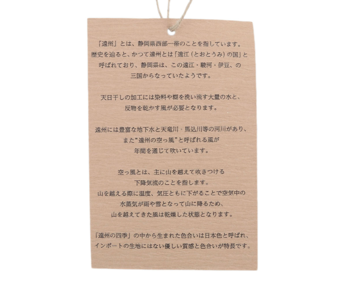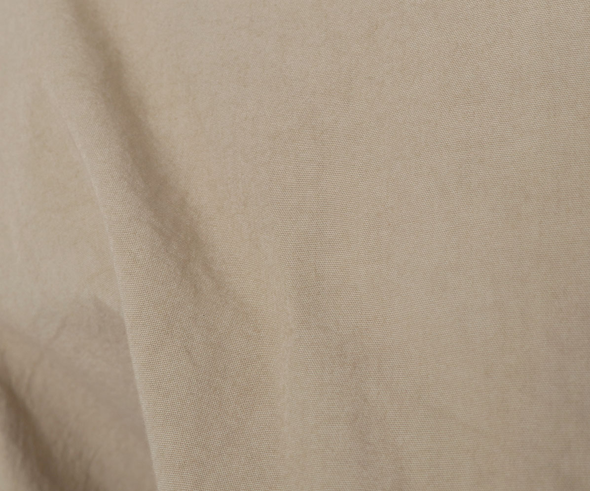 綿を高密度に織り上げたブロードを、職人の手作業による染色&天日干しで、色合いや質感に表情を出した素材です。