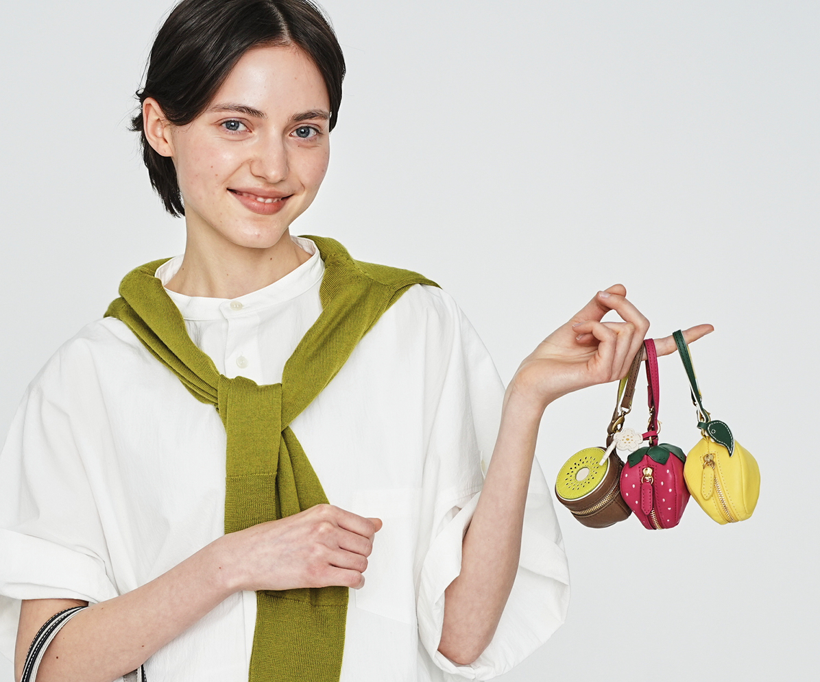 春夏コレクション「フルーツマーケット」では、旬の果物をモチーフに、イチゴ、キウイ、レモンなどを革でフレッシュに表現しました。
