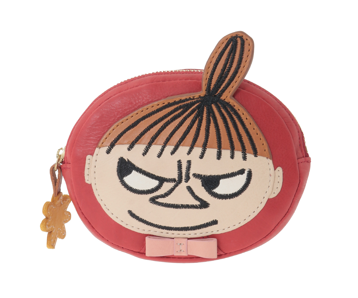 リトルミイの顔を大胆にデザインしたフェイスポーチは、存在感抜群。マチは約2センチあり、リップやカードをすっきり収められます。背面にもポケットがあり、実用性も兼ね備えています。ファスナーの引き手には花のモチーフが添えられ、中はテラコッタオレンジで華やか。小さくても使うたびに元気をもらえるようなポーチです。