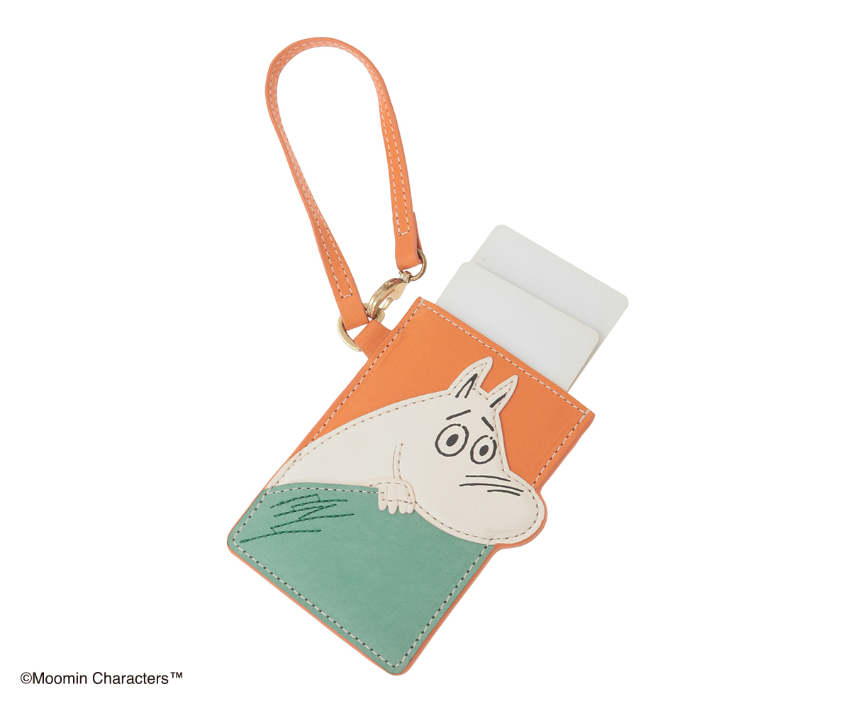 パスケースは2種類登場。ムーミンのデザインではケーキを見つめる姿が刺繍で表現され、パスケースからふっくらと飛び出したほっぺが愛らしいポイント。