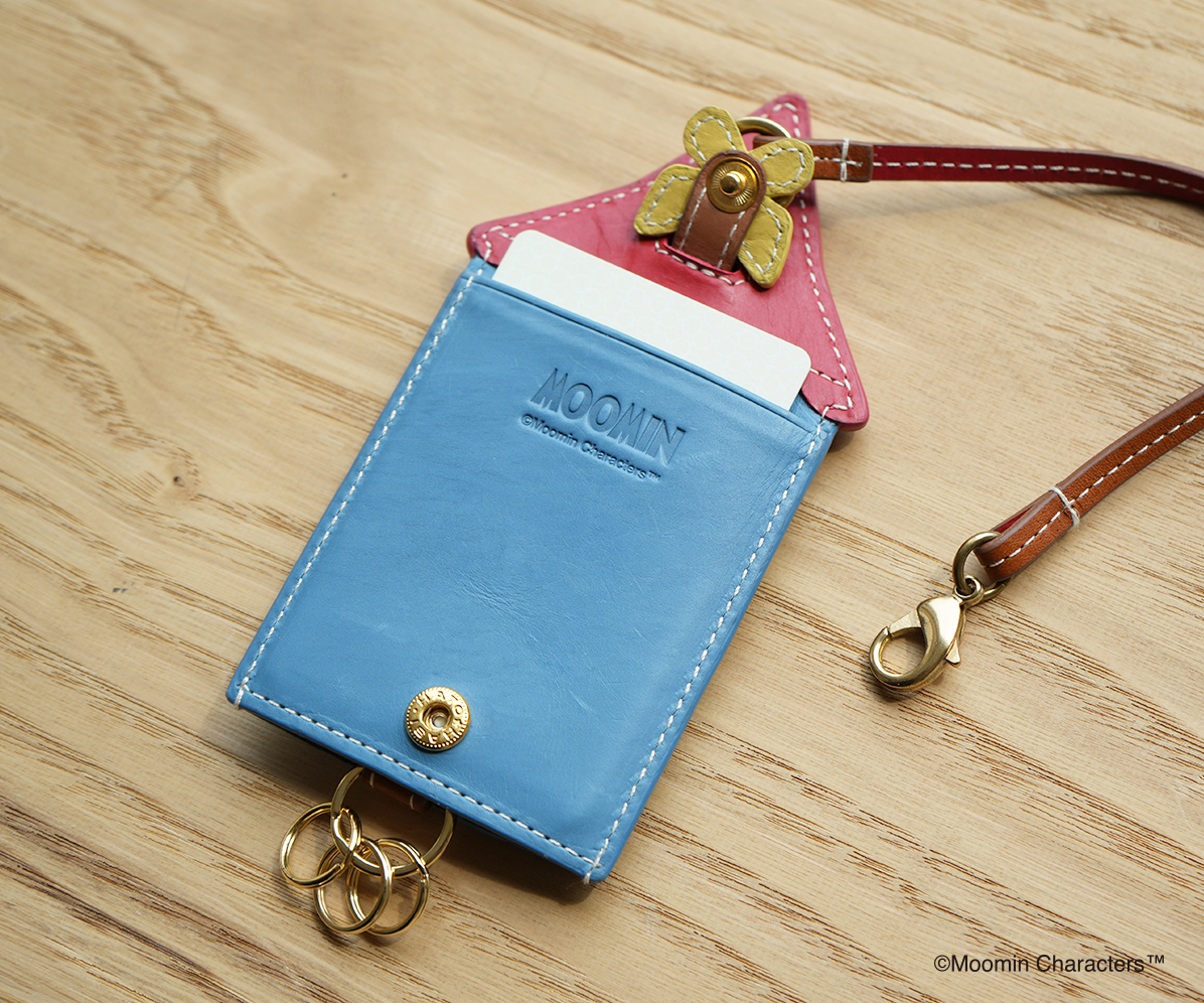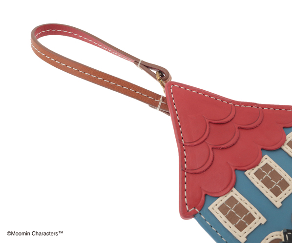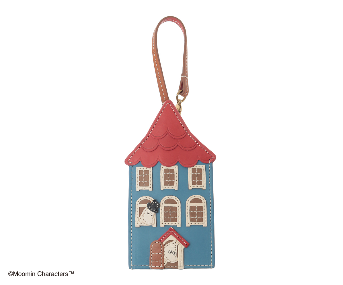 ムーミンやしきをモチーフにしたキークロシェットは、鍵を3本まで収納可能。カード1枚よりも少し大きなサイズで、バッグチャームとしても活躍します。屋根の瓦も革を重ね再現され、玄関にはムーミン、窓からはムーミンパパが顔をのぞかせ見守っています。