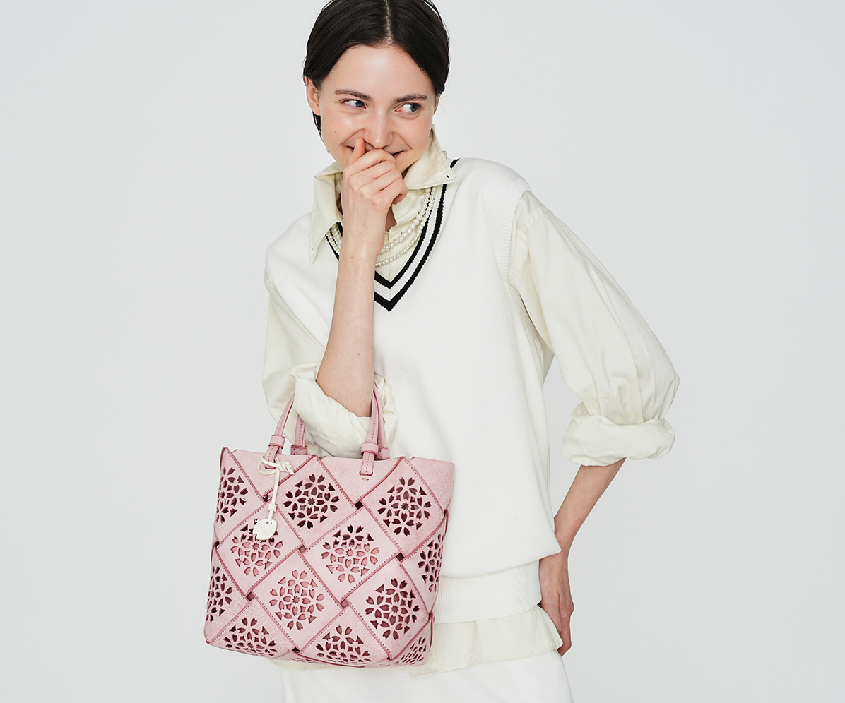 日本の春の代名詞ともいえる桜の花を象ったカットワーク柄、万華鏡のように、幾何学のように。